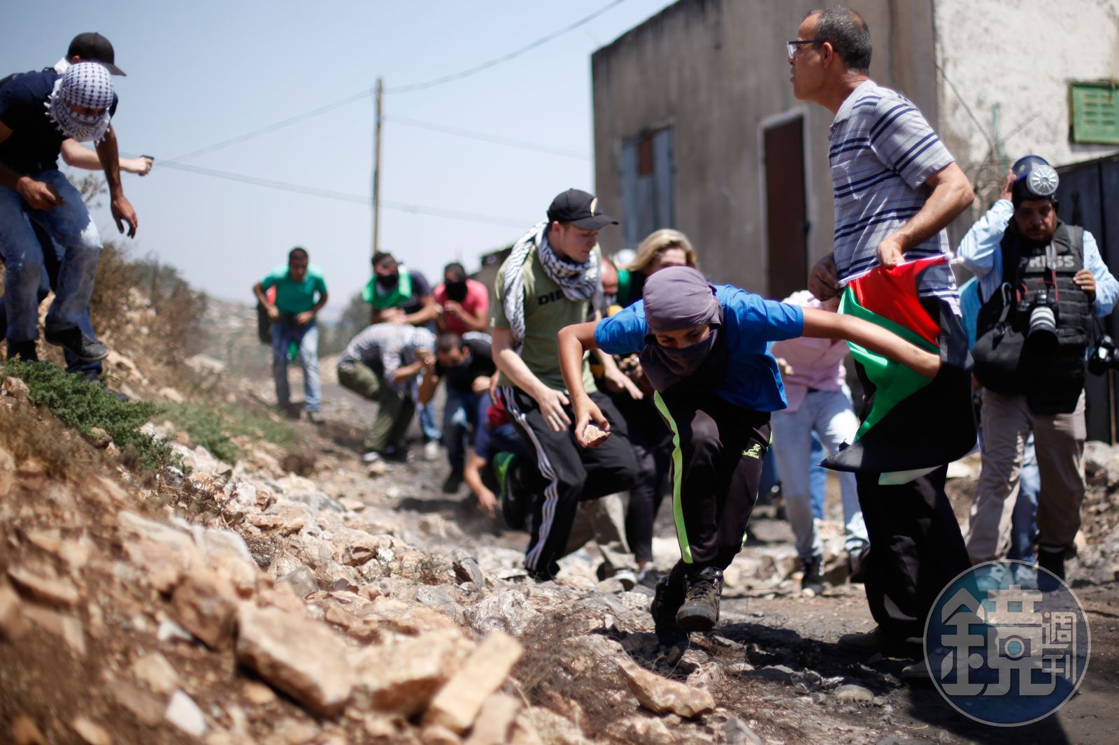 一派斯文的巴勒斯坦記者好友Ahmad,總一面勸我後退、後退、再後退:「快過來我和攝影師旁邊!」一面令人尷尬地加一句:「我佩服妳的勇敢。」青少年時期,Ahmad曾因製作汽油彈、參與第二次大起義而遭以軍逮捕,導致今日他再也進不了以色列、欲出國也困難重重。