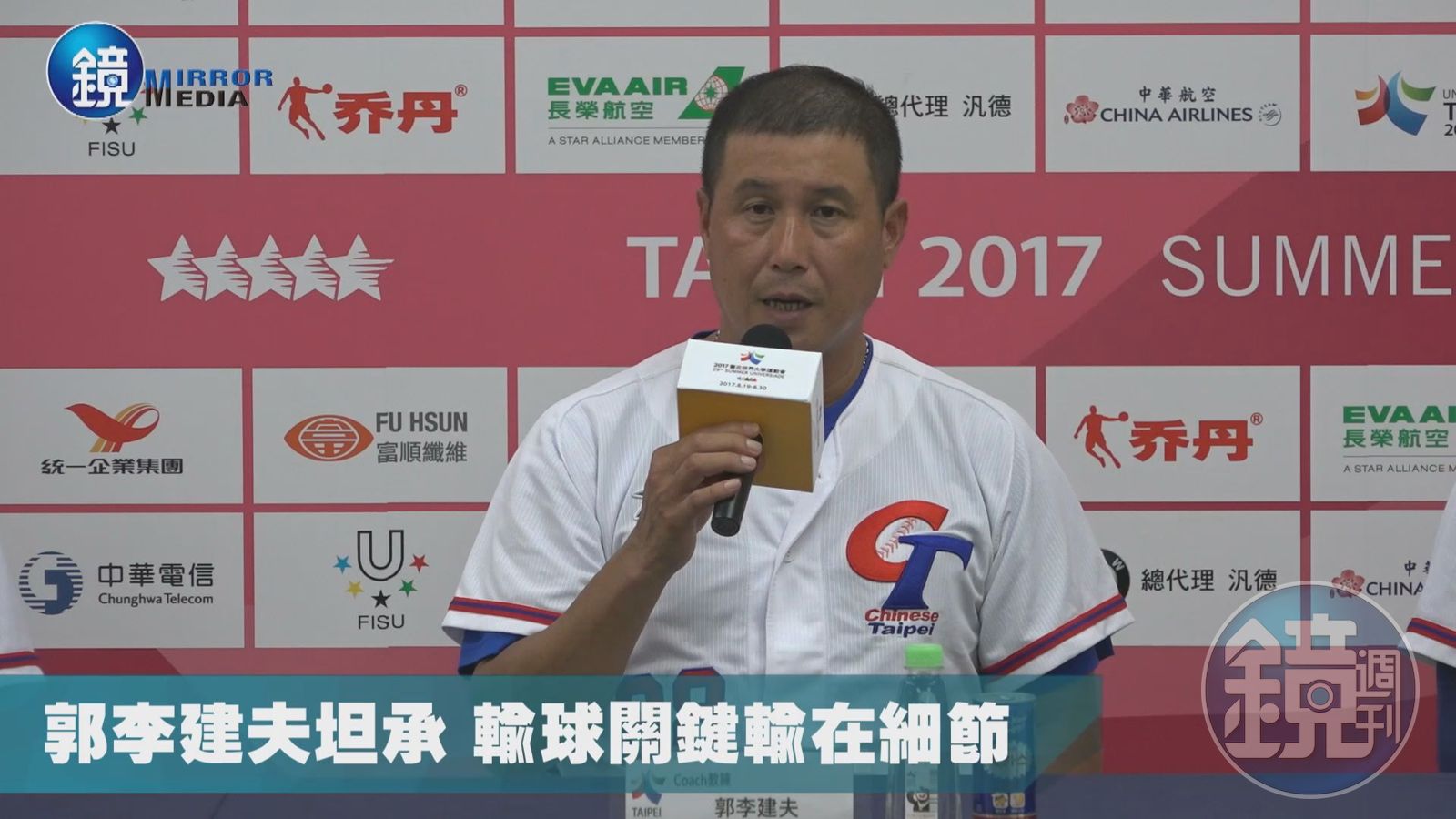總教練郭李建夫在23號記者會上表示,輸就是輸了,沒什麼好說的。發布時間:2017.08.24 11:23 臺北時間