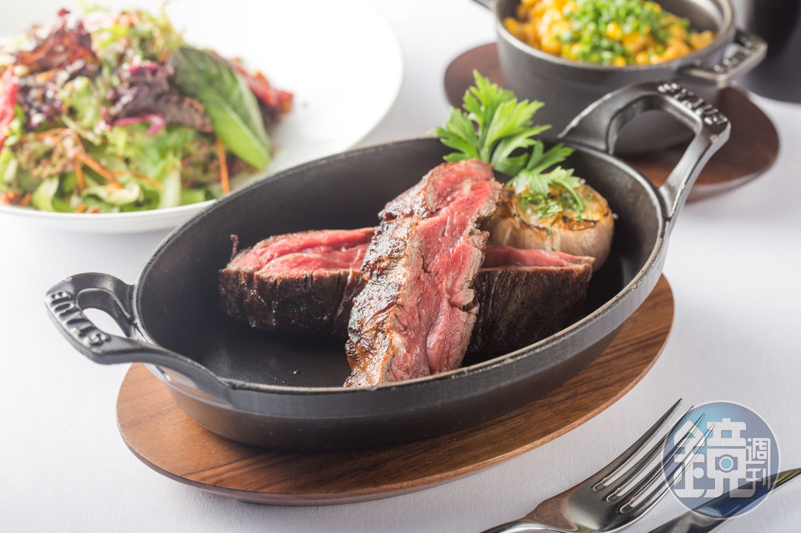 鄧師傅跨入牛排領域20多年,在台北四維路、大直、信義區都有餐廳,今年3月首度南下高雄開了全新牛排館「CAPSTONE STEAKHOUSE」,牛肉嚴選美國Prime等級老饕、肋眼、菲力及澳洲7、9+等級和牛,「用的肉和台北一模一樣,沒有偏心。」鄧師傅說。