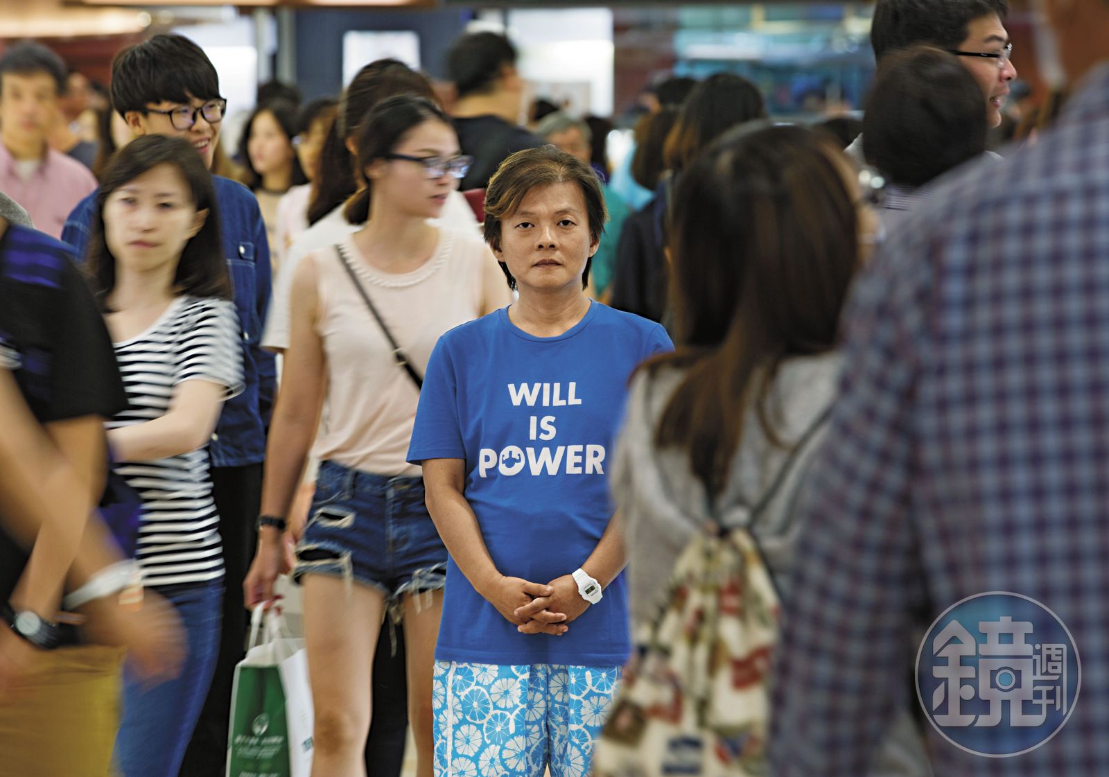 我們與他在百貨公司拍照,他說他不習慣這種地方,也不喜歡走進服飾店,性別符號像一根刺,碰見了就受傷。他身材嬌小,男生的衣服就算最小號,對他也太大,但買女生衣服,又面臨性別檢查,所以他總是買T恤,上頭有標語如:LOVE、LIFE、LIVE。他說:「我會一次買10件不同顏色的。」
