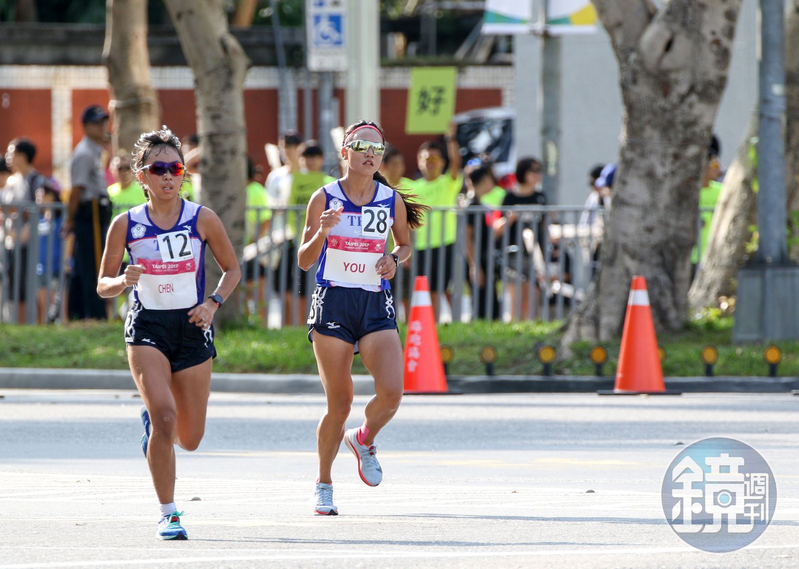 女子組半馬選手陳宇璿(左)和游雅君(右)在艷陽下賣力前進。