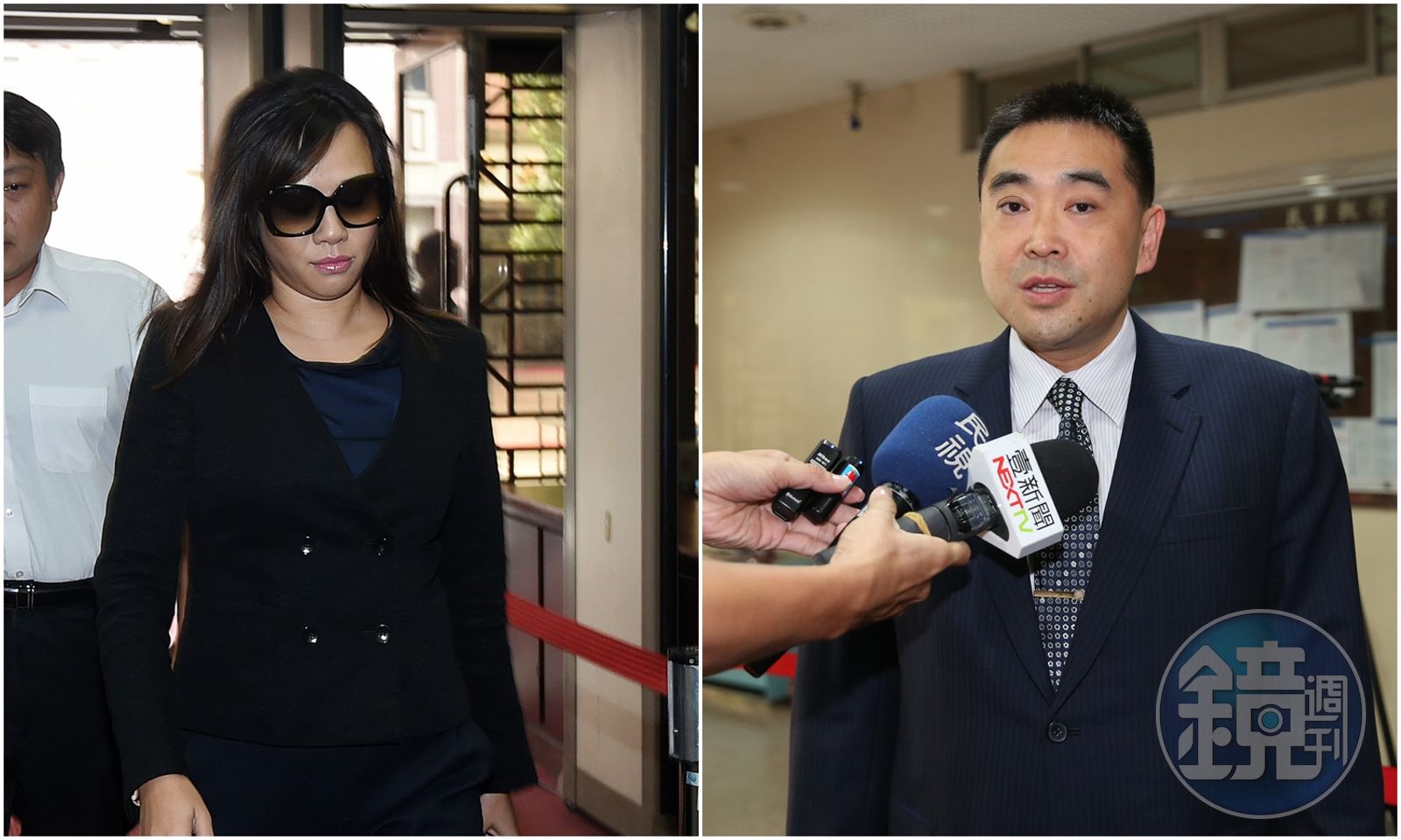 20分鐘後,在3男1女的保鑣簇擁下,身穿黑色套裝的吳欣盈也現身台北地院,只見她不發一語,戴著黑色太陽眼鏡,神色難掩緊張快步走到法庭內就座,就連記者上去打招呼,女保鑣都快速上前阻擋,直說:「不方便。」雙方分別坐在法庭內、外等候,完全零互動。