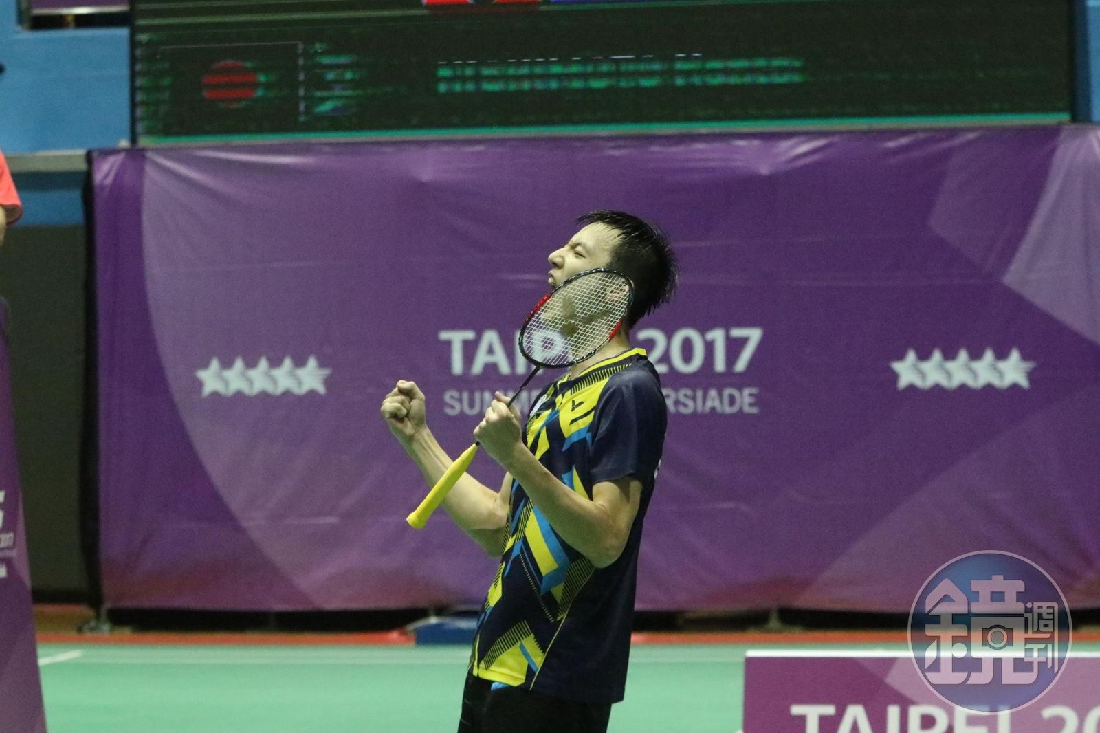 今日晚間世大運舉辦羽球個人賽,名列男單頭號種子的王子維,並沒有讓球迷失望,儘管今日午間才歷經4強賽苦戰,頂著疲累的身體,晚上接續金牌戰,他仍以21:16、21:15的比數,擊敗宿敵日本西本拳太,順利奪得羽球男單金牌。