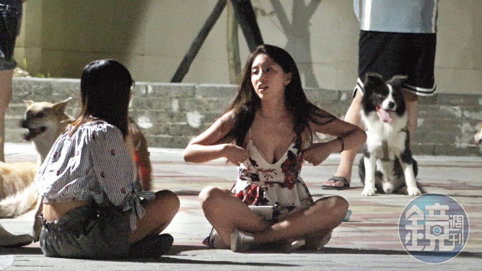 本刊直擊,8月23日晚上11點多,在台北市大安區某個小公園,辜莞允穿著碎花深V露背連身短褲現身,因為穿著火辣,立刻就成為公園的焦點,幾分鐘之內,她附近馬上圍繞著男人與狗狗。