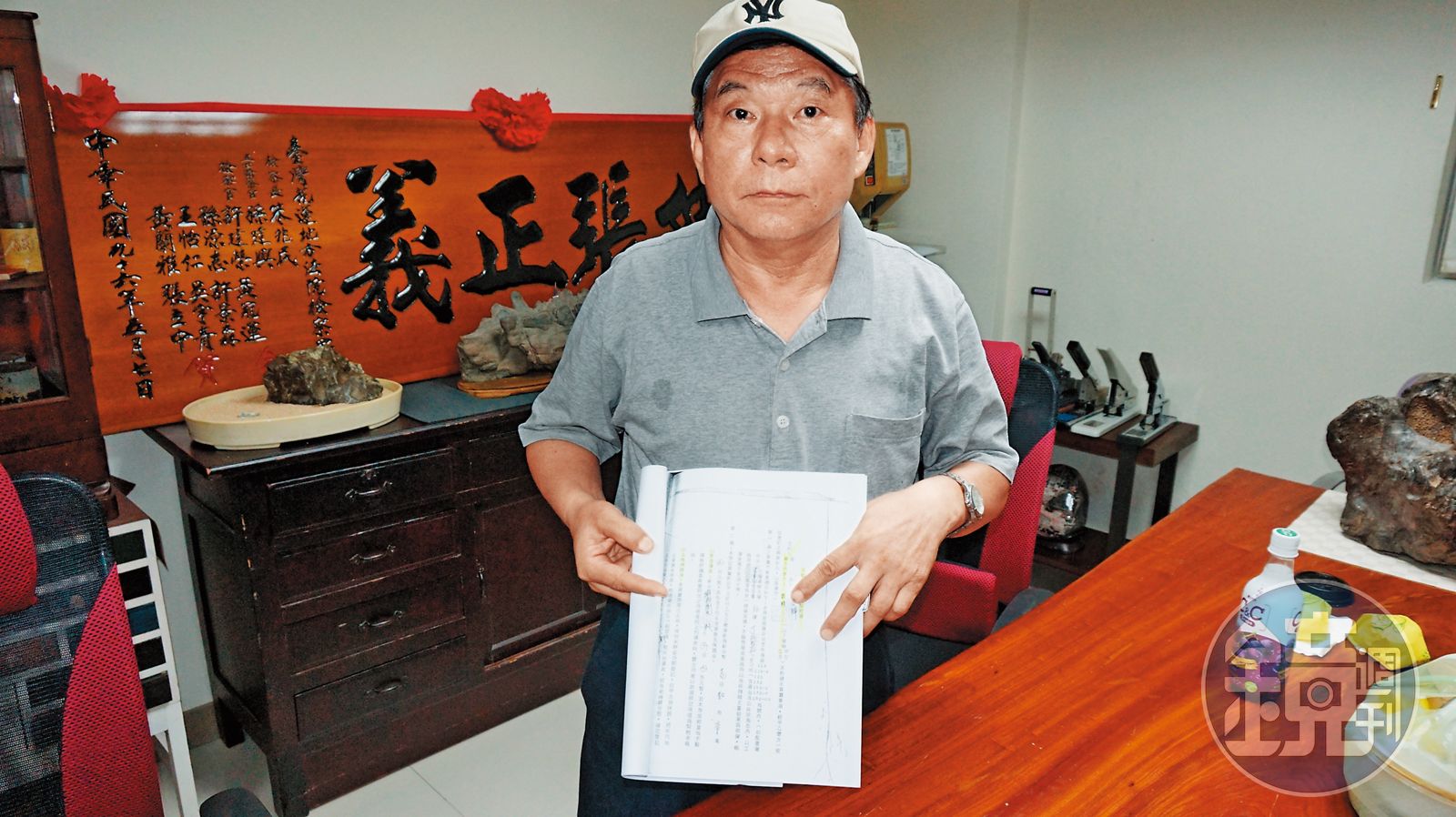 陳文輝說,當初購屋的住戶交了8成屋款,最後一期買地保證金,當年因建商與地主有糾紛而無法繳納,雖搬進去住,至今仍拿不到房地權狀,名義上房屋是柏美建設所有、土地為地主林建成家族所有,住戶只有等同於房屋使用權的「事實上處分權」,且房子在法律上還屬違章建築,「我花比市價高的錢,只買地上權,合理嗎?」