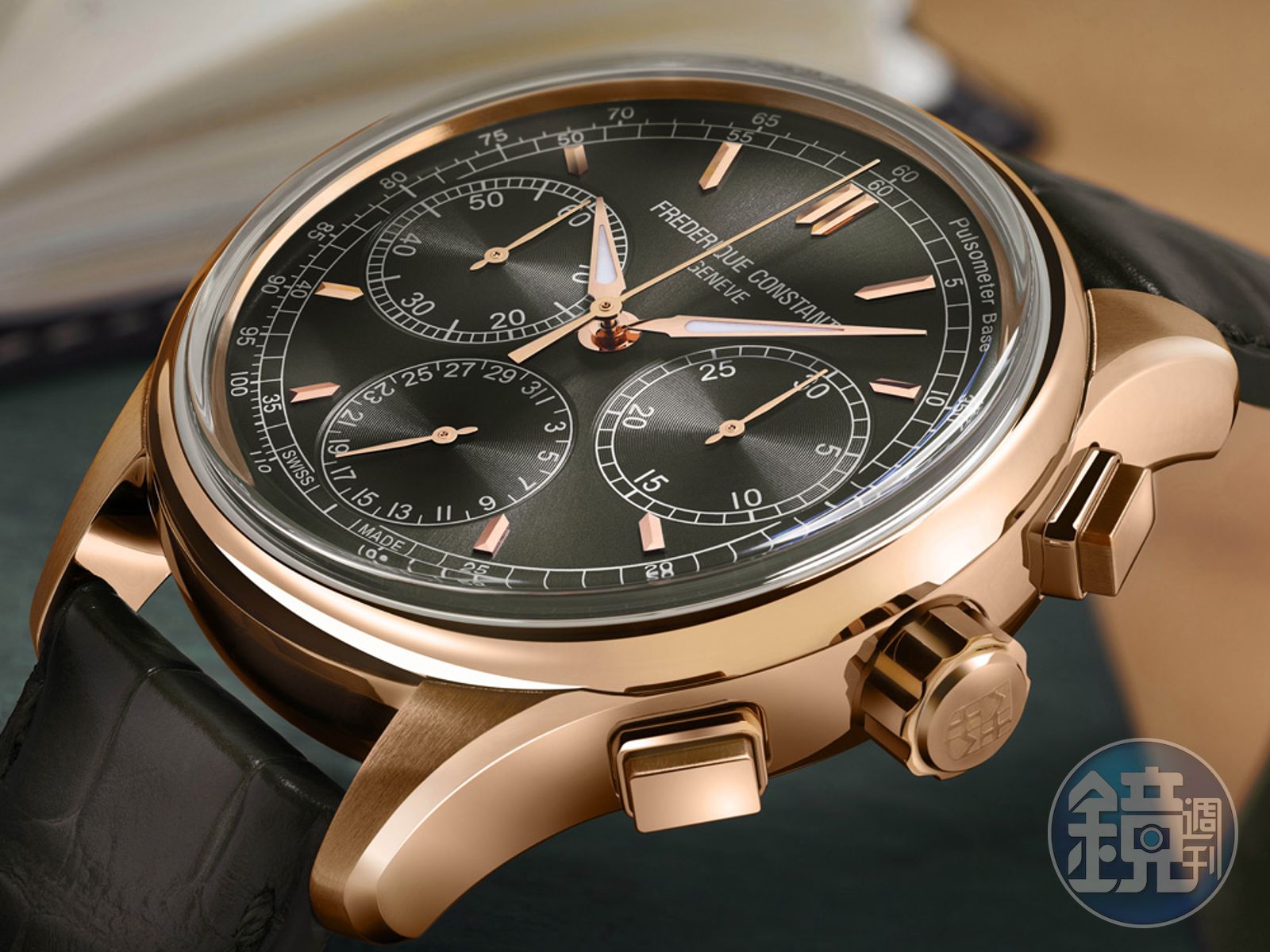 FC-760自動上鍊機芯/不鏽鋼材質/錶徑42mm /時、分、秒顯示/飛返計時碼錶功能/藍寶石水晶鏡面、底蓋/防水50米/鱷魚皮錶帶/建議售價:NT$138,000