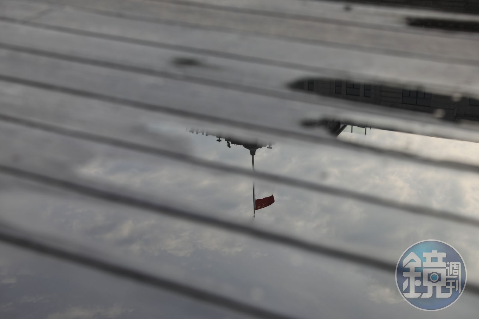 倒影下的五星旗。