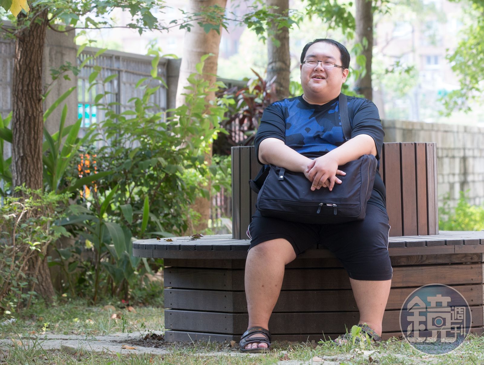 「後來我學會反擊,我很會打架,有人被我打到住院。」上了高職,因為不適應,體重到達220公斤,「我每天醒來,就覺得好累,好想去死。」站著累,躺著也累,當時是樂隊班,他因為太胖沒有制服穿,於是不能上台表演。他說,當時每天就是無意識地一直吃。