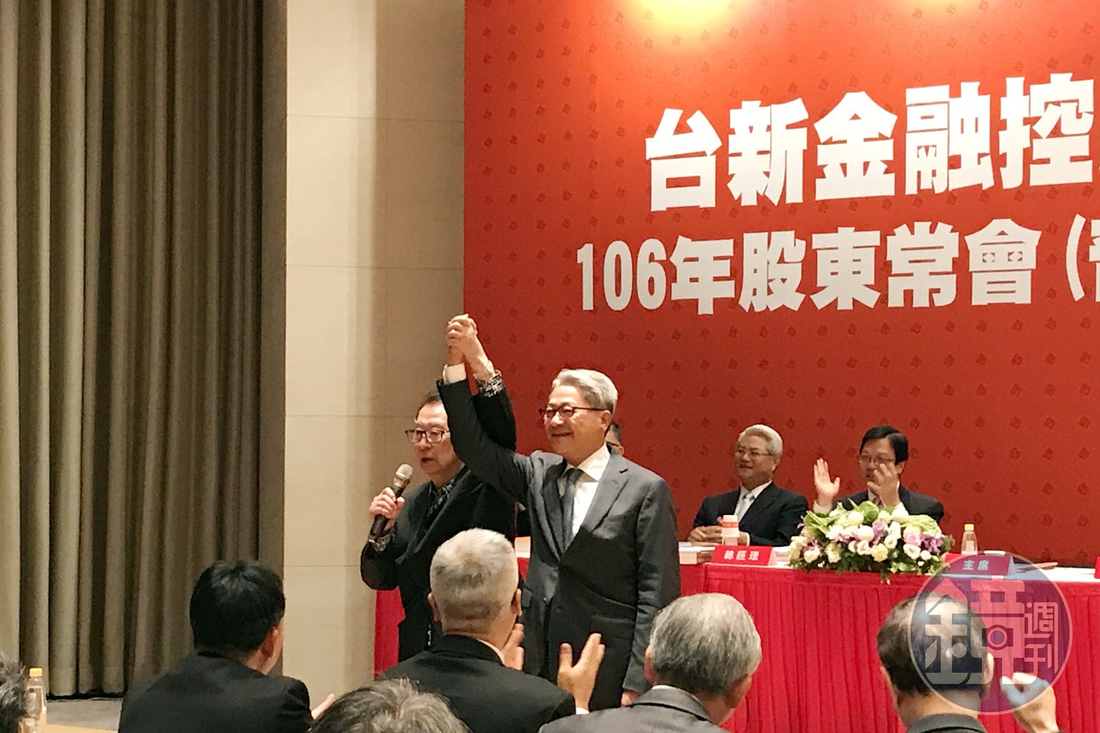 身為台新金的大股東,唐楚烈火力全開,他拿出一張紙條,特別列出五點,建議台新金應檢討的方向,台新金在整合行銷非常弱,各部門做各部門的;超過61%的營收來自財富管理,對公司整體穿透力和成長都非長久之道;對產業面的整體投資規劃也不完善,看不出綜效;人才來源過度集中;董事會的家族色彩濃厚等潛在隱憂。