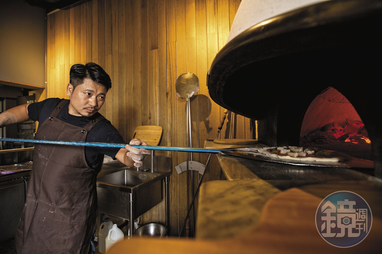 湯皓雄的標準高,早期展店速度也不快,2010年在左營開第2間店時,才陸續加入義大利麵和燉飯,披薩也改成邊厚中薄、有著豹紋斑點的拿坡里式,統一做成8吋的大小,以龍眼木柴燒,增加香氣。湯皓雄解釋,拿坡里式的南義披薩口感更Q,他一直想做,但發酵時間更長,早期他只有一個人,無暇製作,後來請了師傅,才全部更換,客人也更喜歡。