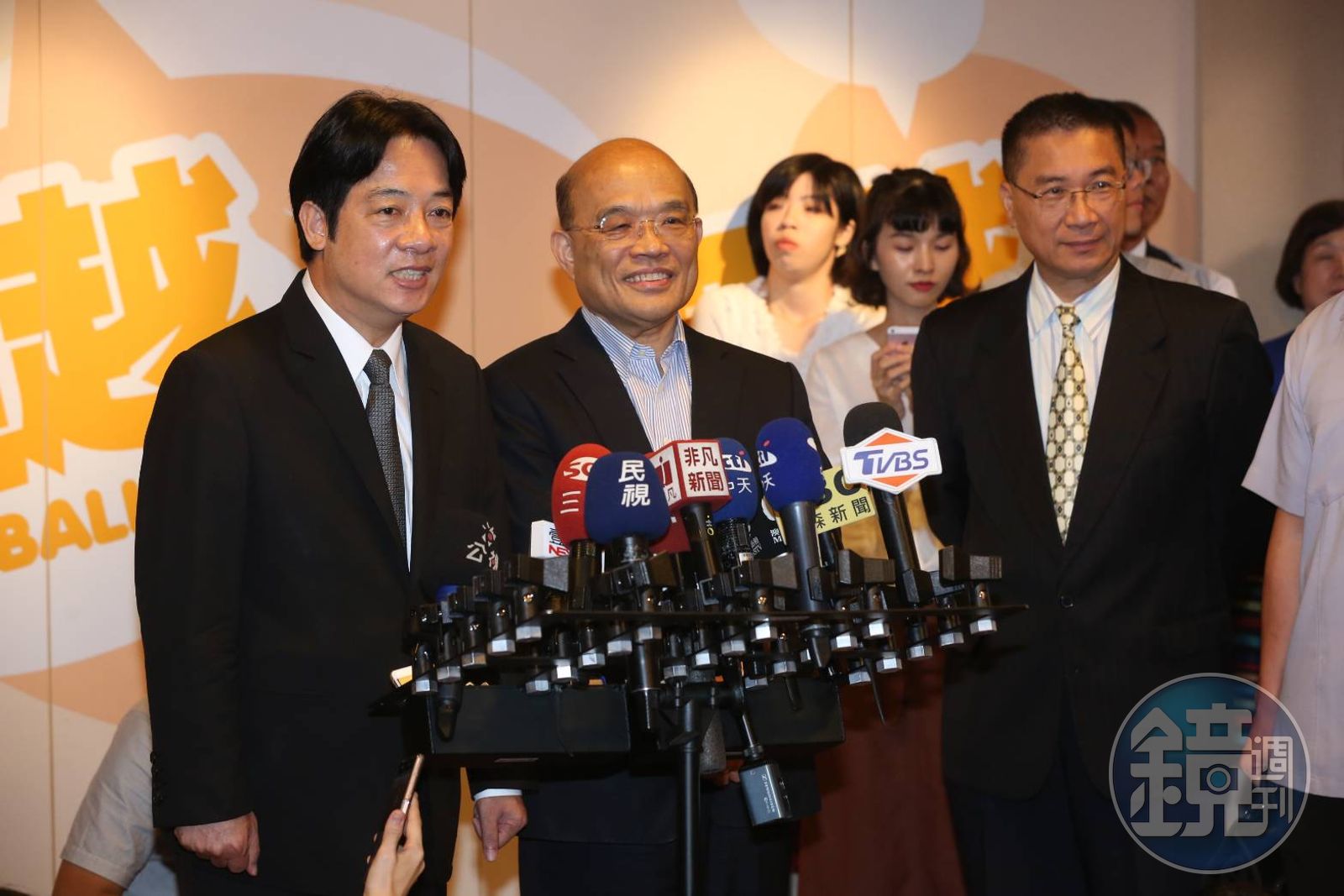 對於外界關心的新北市長人選,蘇則是笑說:「今天談行政院的工作,沒有談到新北市長的人選問題。」
