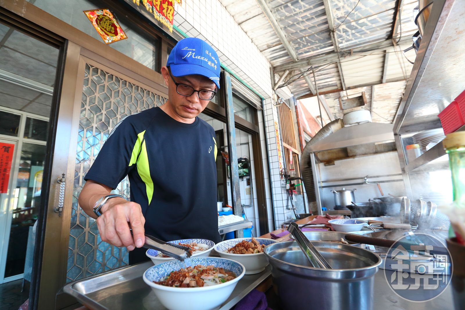 蕭凱嶸表示,早期阿公時代是用純鮪魚肉燥,但有客人抱怨湯頭太腥,「我回家接手後才慢慢調整湯頭,摻入豬絞肉混合,現代人怕油膩,也要濾掉大骨湯頭上的浮油,降低油膩感。」