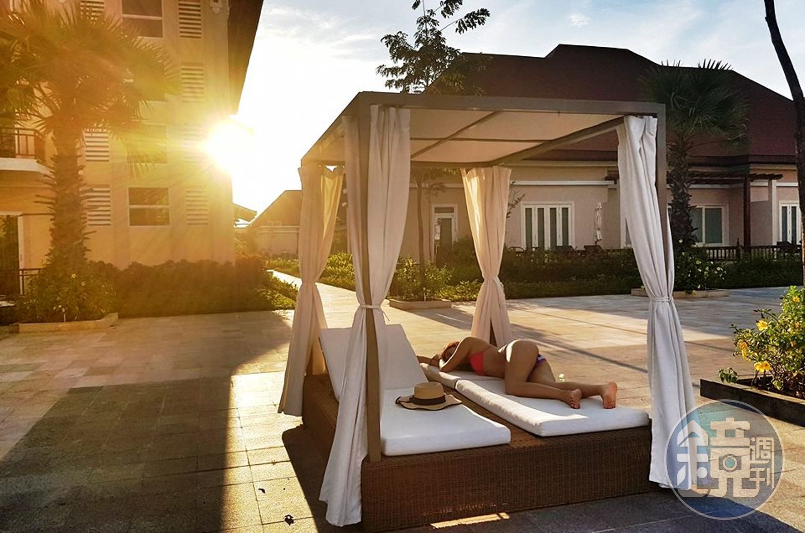 「華航林依晨」趙筱葳被本刊獨家報導擁大肌肌新男友,不過這幾天她忙著和好友林佩瑤到吳哥窟旅行,在臉書曬出多張超正比基尼照,還有一張她趴在戶外床墊大秀翹臀好身材,格外引人遐想。