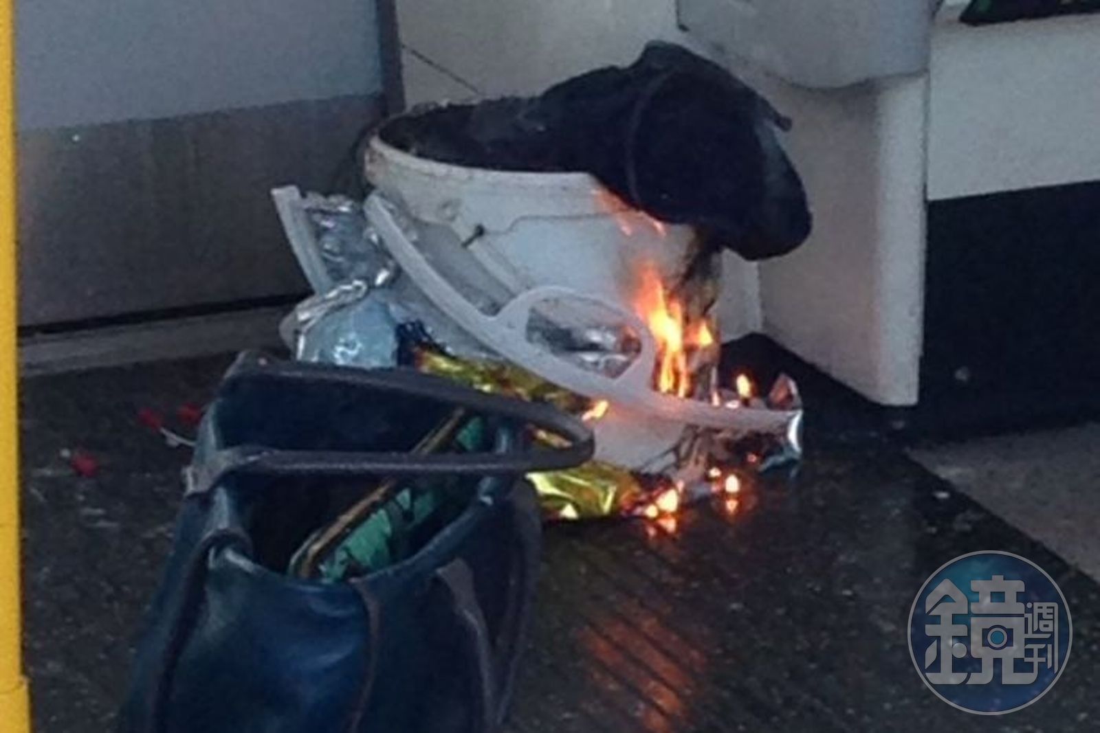 英國警方在第一時間,並未說明爆炸的來源,不過從民眾拍攝到的照片和影像,可以看到出事車廂內有一個白色塑膠桶,裝在超市手提袋裡。桶子裡明顯有東西在燃燒,而且還有黑色電線從桶子裡延伸而出。從影像中判斷,爆炸似乎並未造成車廂內部明顯損傷。