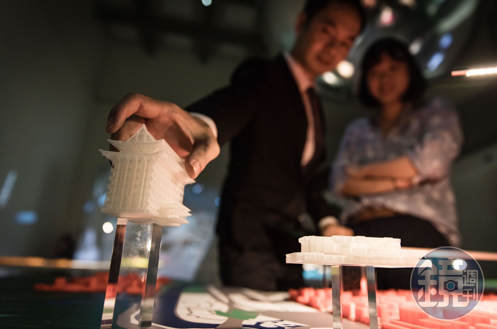 當日,周東彥記錄下林懷民的反饋和意見匆匆離去,為自己在北美館的展覽《可交換城市計畫》做準備。兩天後,我們前往美術館,看他為這個與荷蘭葛羅寧根大劇院的聯合企劃做布展。只見他用3D列印將台北十二的行政區列印出來展示,展期內,觀眾可以將台北101、小巨蛋、市政府等地標一棟一棟放入高速果汁機絞碎成粉末。眼看他起朱樓,眼看他宴賓客,眼看他樓塌了,展覽結束,整座城市在果汁機灰飛煙滅,如同壇城沙畫。