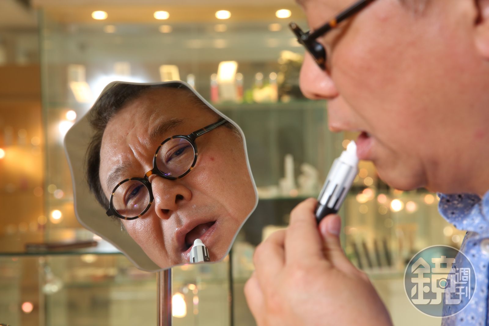 「我很喜歡逛專櫃、試用新品,剛開始還會藉口是要買給太太,否則專櫃小姐根本不會裡你。」郭靖凱比女人還懂女人,不自覺地盯著我的臉說:「亞洲人的臉部不立體,一定要用眼線,最好在眼尾勾2條,長的眼線能把眼睛拉大,短的能加深輪廓…」連番柔性勸導,讓貪睡素顏採訪的我,真想挖個地洞鑽進去。