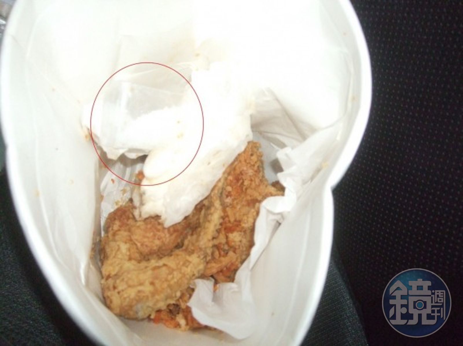 鍾嫌的炸雞掉了一地,他還是很寶貝的緊抱著炸雞桶,員警對其詭異行徑感到不解,乾脆搜個徹底,果然在桶底找到一小包K他命。員警說,本來發現疑似K盤的物品,查其身份是必然的,頂多在對方同意情形下搜索,若鍾嫌不是如此珍惜的緊抱著他的炸雞桶,死都不讓警方碰,員警也不會執意要把炸雞桶翻個徹底。