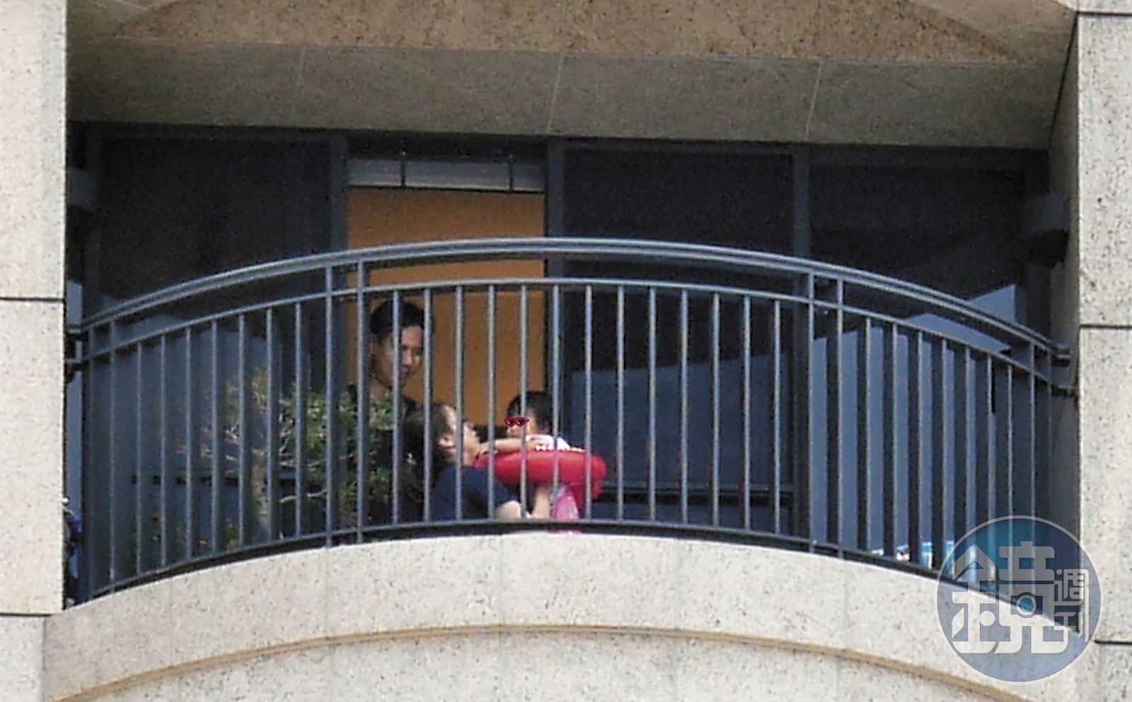 周渝民(仔仔)9月5日出席活動,最近在中國戲約忙碌的他,因為和劇組約定「一週返台一次」,其實常常在台出沒。8月13日中午11點多,本刊拍到仔仔現身自家陽台,乍看似乎在為陽台上的盆栽澆水,但他的臉上盡是幸福笑容,原來陽台上還有喻虹淵和女兒在玩水,一家三口享受天倫樂,仔仔帥氣臉龐上漾著慈父光芒。
