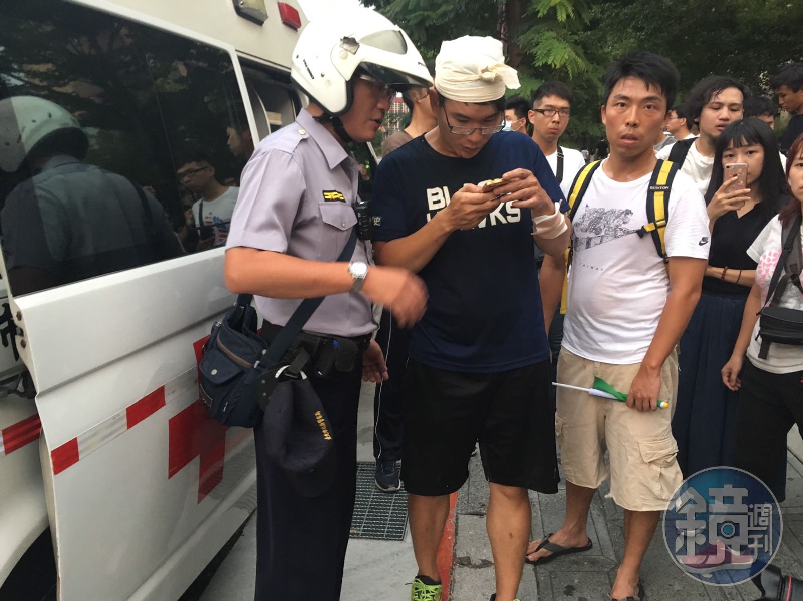 在暫停活動後抗議活動仍持續延燒場外,「台獨機關槍」李柏璋並在臉書上進行直播,直播中可見學生遭到中華統一促進黨成員男子胡大剛(61歲)持甩棍攻擊而濺血,警方獲報立即於晚間7時許將攻擊者胡大剛約談到案,胡男坦承不諱,現正依法偵辦中。
