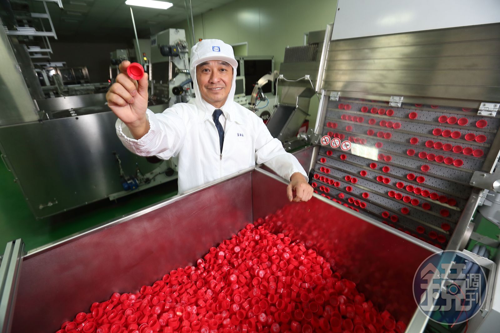 戴宏全興奮地說:「QR Code瓶蓋2016年交貨15億個,今年預計可交25億個,包括東鵬、王老吉、加多寶、百事可樂、可口可樂、康師傅等都已陸續採用,未來10年只有我們宏全能做,是我們綁住大客戶的利器!」