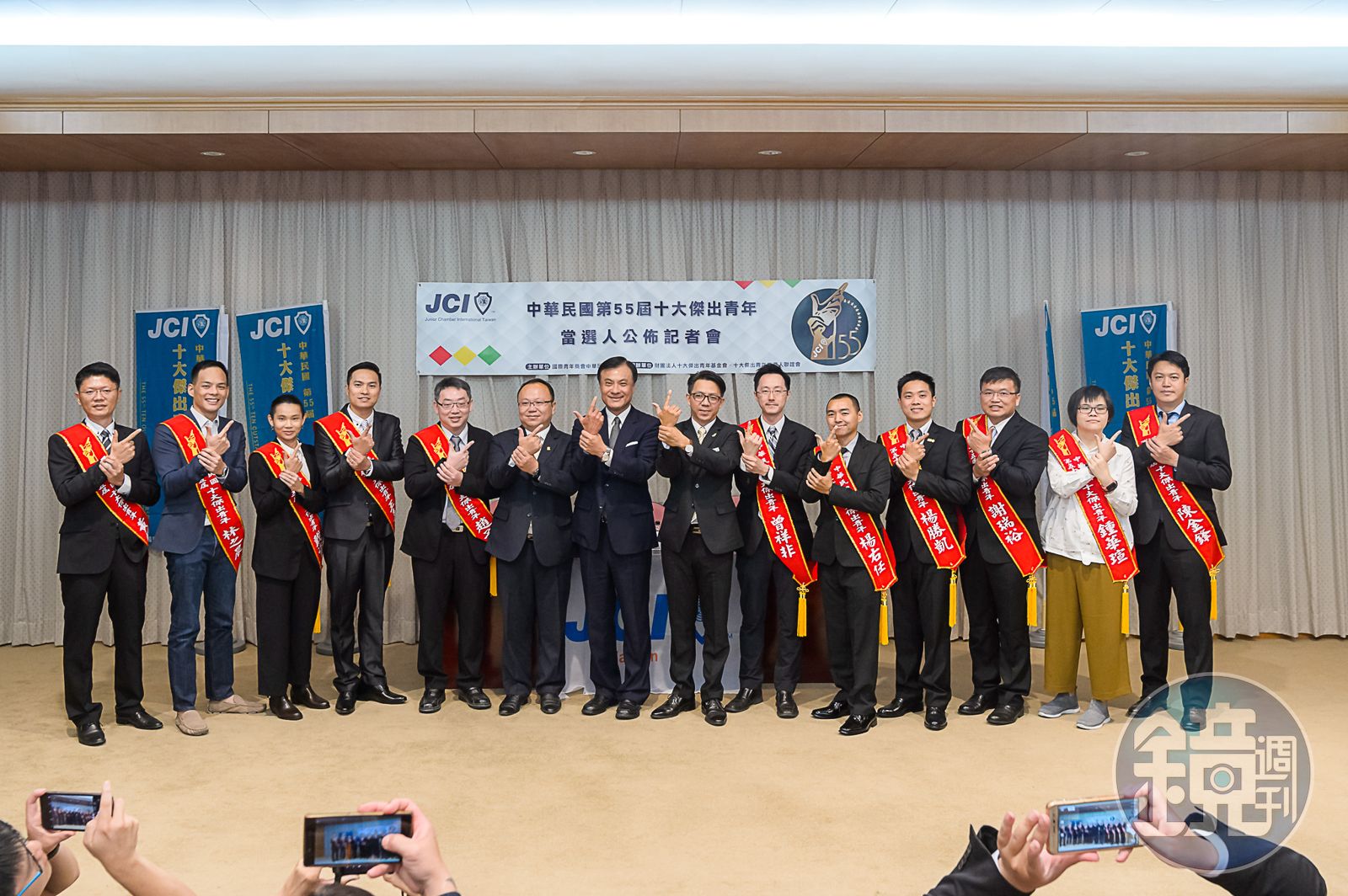 今年度十大傑出青年的當選人名單如下:台北醫學大學大腦與意識研究中心副教授曾祥非(科學及技術研究發展類)、啟英高中餐飲管理科教師楊勝凱(基層勞教類)、AppWorks之初創投創辦合夥人林之晨(企業、創業及經濟發展類)、台北榮民總醫院心臟內科主治醫師趙子凡(醫學研究類)、台灣原住民部落振興文教基金會執行長王嘉勳(社會服務類)、微型藝術駐村藝術家鍾華瑄(文化及藝術類)、法務部調查局南機站調查官黃麟傑(公共行政類)、豐滿生技農場董事長謝瑞裕(農漁環保類)、舊鞋救命國際基督關懷協會理事長楊右任(兒童、性別及人權關懷類),以及戴資穎及陳金鋒(體育技藝類),共11人。