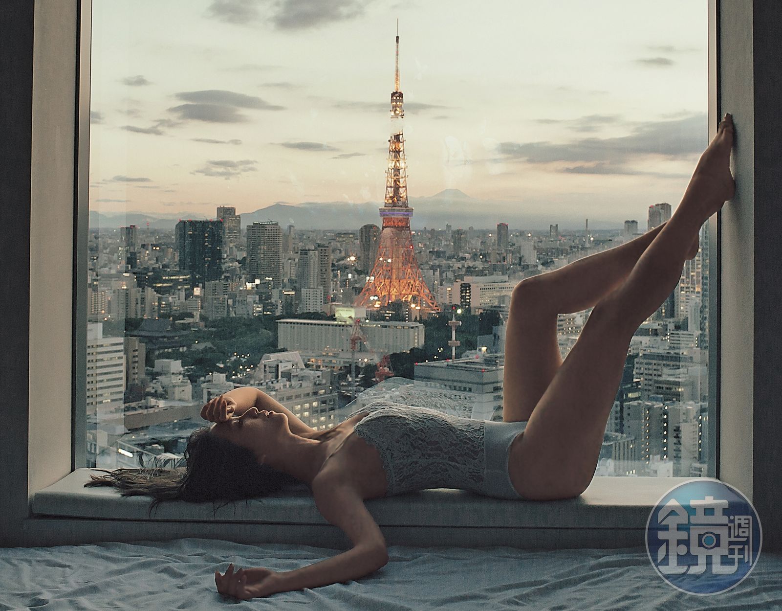 周曉涵當初是看某個網紅躺在大落地窗框,外頭矗立東京鐵塔的場景,因此激發她的構圖靈感,死找活找才找到適合的飯店,完成該張僅穿貼身衣褲的挑逗美照。