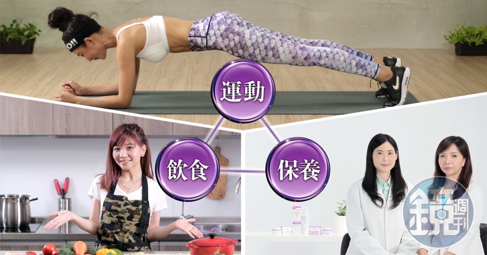身分證的年齡可以增加,但體態與肌膚的狀態可不能妥協。想要永遠看起來比實際年齡小十歲,就快來看各路達人教你3招「黃金三角逆齡術」,掌握全方位青春關鍵! 除了讓人猜不出「臉」齡,身體機能與體態都要維持良好狀態,才是現代人追求的新境界。這次,我們也邀請到專業皮膚科醫師林明秀與花王教育副理尤美雪、超人氣的運動美少女丁小羽、烹飪高手布魯媽媽Lina,從「保養X運動X飲食」三方面下手,教你培養抗老好習慣,由根本提升身體屏護力。 乾敏肌的你,肌膚正面臨「破守離」的狀態嗎?「破」指的是乾燥敏感肌很多成因是由於角質屏護力不足,所以「守不住」重要滋潤成分,水分跟彈力就會「離」開你,乾燥細紋也漸漸出現!專業皮膚科醫師林明秀與花王教育副理尤美雪建議,想要從根本提升肌膚屏護力,關鍵就是補充「潤浸保濕Ceramide」成分……看影片學更多。 正妹教練丁小羽在Youtube上以「羽建身」健身教學影片擁有超高人氣。這次的影片獨家教學各種輕肌力訓練,讓你從臉部、腹部到背部養成身體的黃金三角屏護,遠離老態……看影片學招式。 百萬網友都說讚的超人氣料理部落客布魯媽媽Lina,擅長用最方便取得的食材、最簡單的料理步驟還兼具華麗美感的擺盤,吸引你下廚做菜。這次,她要教大家用富含營養的超級食物來做菜,讓養顏美容就從「飲食」開始!……獨家食譜看影片。 全新!Curél逆齡彈潤系列