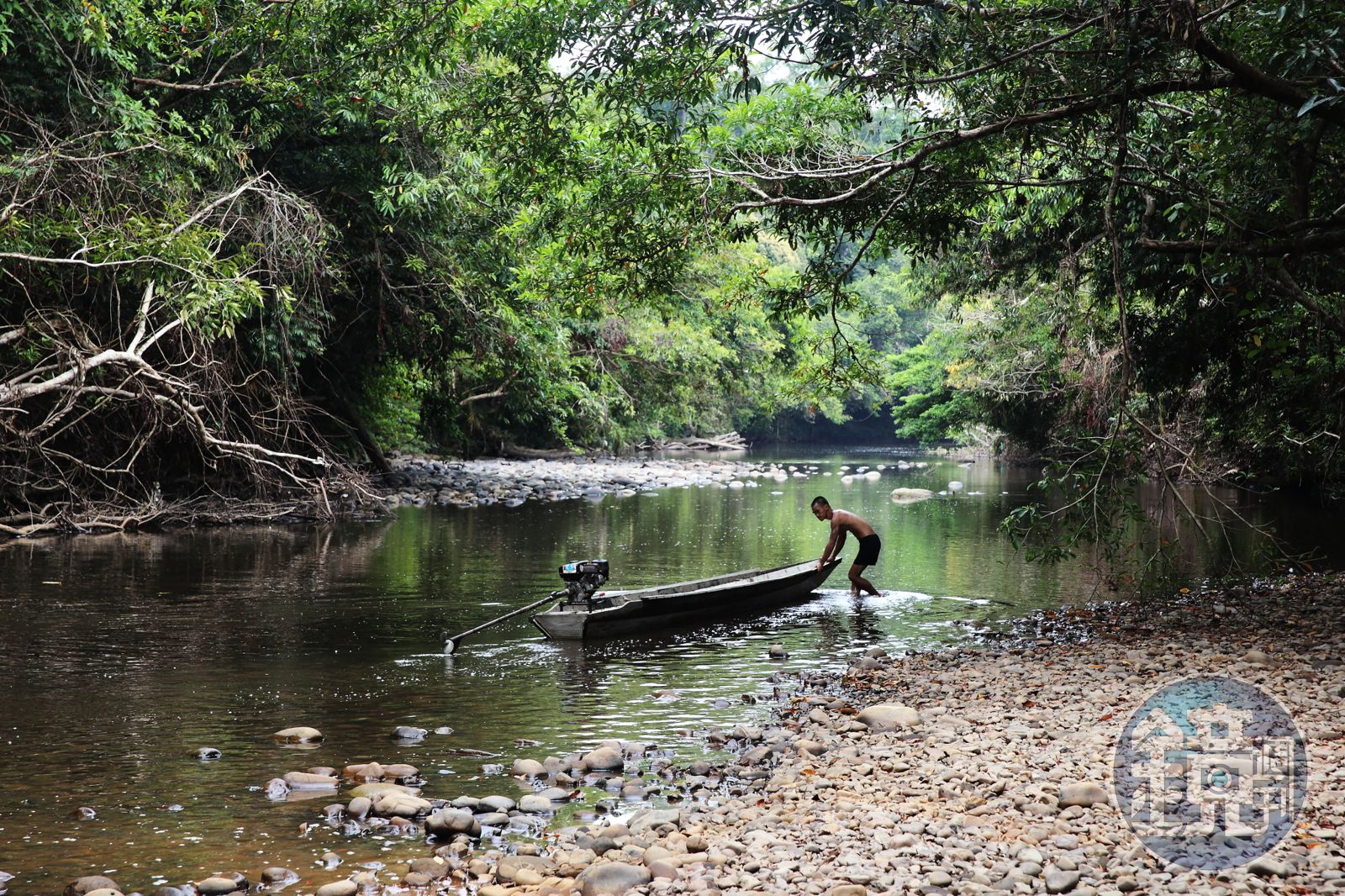 船又啟程,航行不久,在支流處停下來。他們說,走,進森林找榴槤。我從極其泥濘的河岸下船,乖乖跟著走入森林。那時已經下午了,林蔭處偶爾有眼蝶以落葉的姿勢飛行。