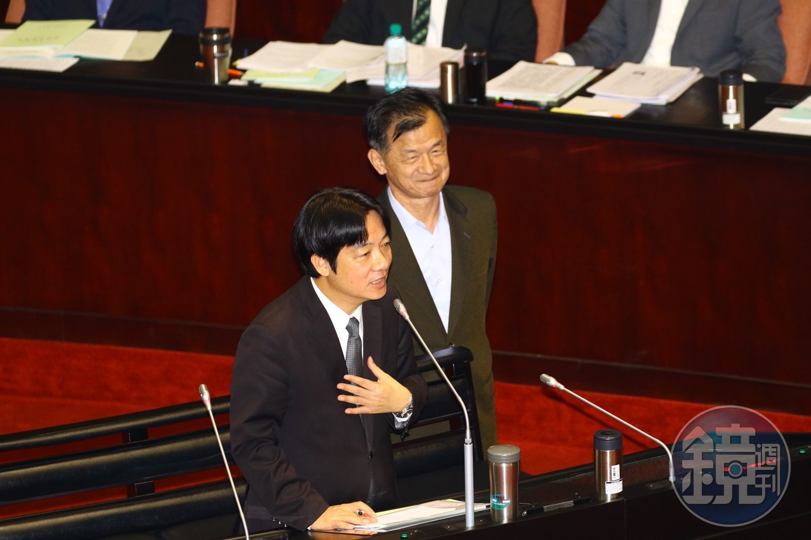 許毓仁今質詢時先問:「同婚法案什麼時候會處理?」賴清德說,行政院一定會配合大法官會議解釋,希望能儘速擬出妥善方案,解決目前不同的意見。許追問:「你本人贊不贊成同婚?」賴答:「我贊成啊!」許接著問:「請問本會期會處理嗎?」賴清德說,政院一直都積極處理中,「都沒有停下來」,但目前還有一些細節需要再討論。