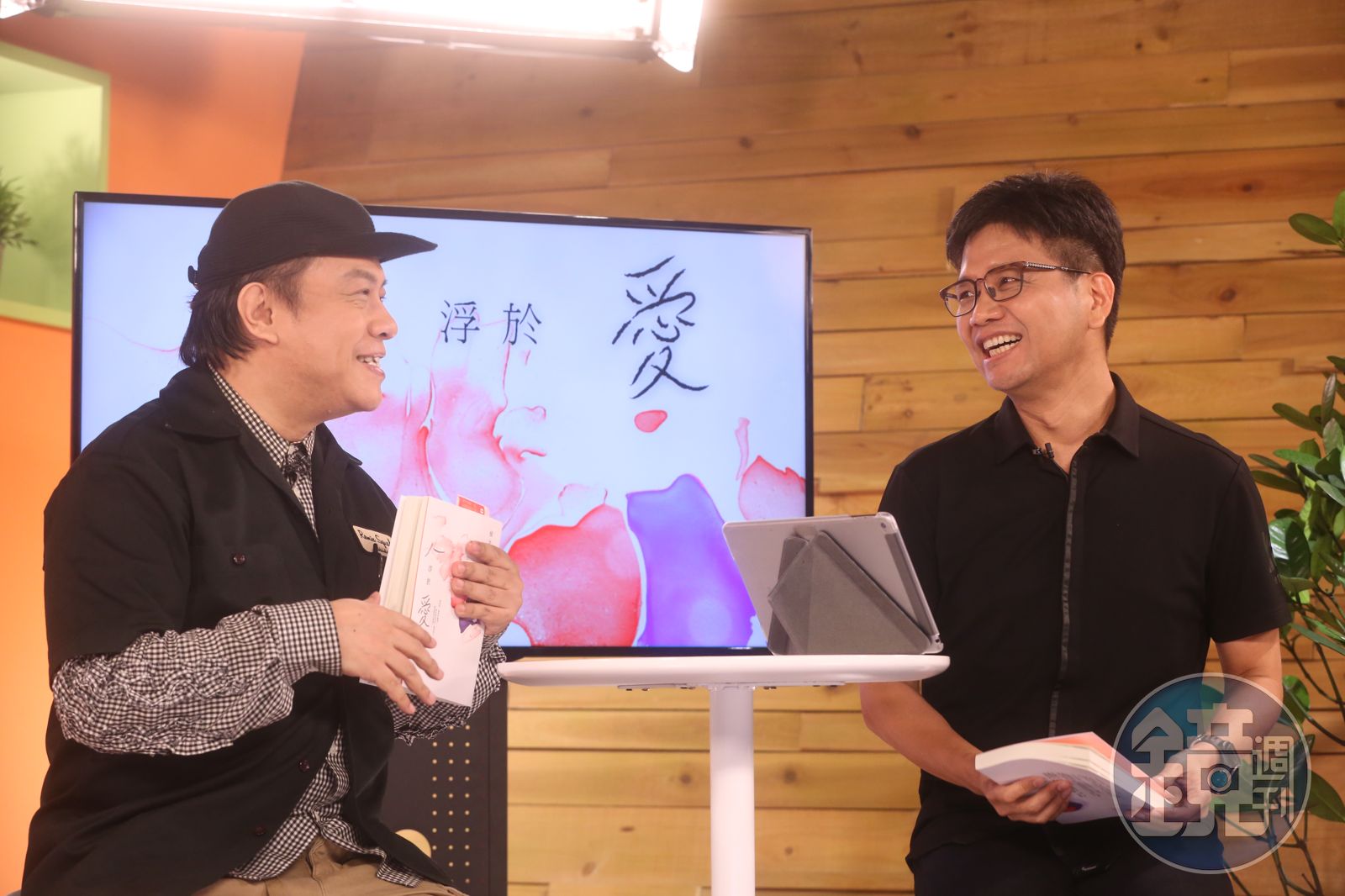 在寫作方面,他常常鑽進一個我很陌生的世界。像是之前他鑽到《金瓶梅》裡面去,我真的一頭霧水,我雖然很尊敬《金瓶梅》,但不至於讓我願意栽進去。我跟文詠之前一起花最多時間討論的是《三國演義》,如果他後來鑽進《三國》,我可能比較好懂一點。換言之,文詠他如果想鑽進比較通俗的世界,那就鑽進《三國》,裡頭有講管理學、政治、人際關係,統統都有。如果要偏人生哲理、佛學一點,就鑽進《紅樓夢》好了。結果他竟然鑽進《金瓶梅》,第一個是讓我很困惑,第二個就是鑽進去之後,還寫了那麼厚一本書(《沒有神的所在:私房閱讀金瓶梅》)去分析劇情,很令人費解啊,他又不是唸文學博士的,他是醫學博士耶,做這事情幹嘛!
