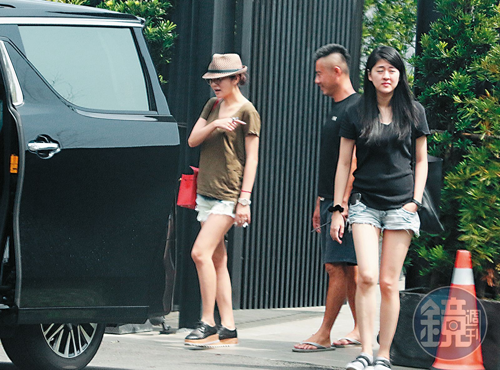 隔天30日中午,本刊目擊穿著一身便裝的她,在民宿老闆護送下步出門口,手上依稀可見戴著近億元的10.57克拉婚戒和對戒,身上背的也是老公文定時送給她的65萬元愛馬仕紅色鴕鳥皮凱莉包。