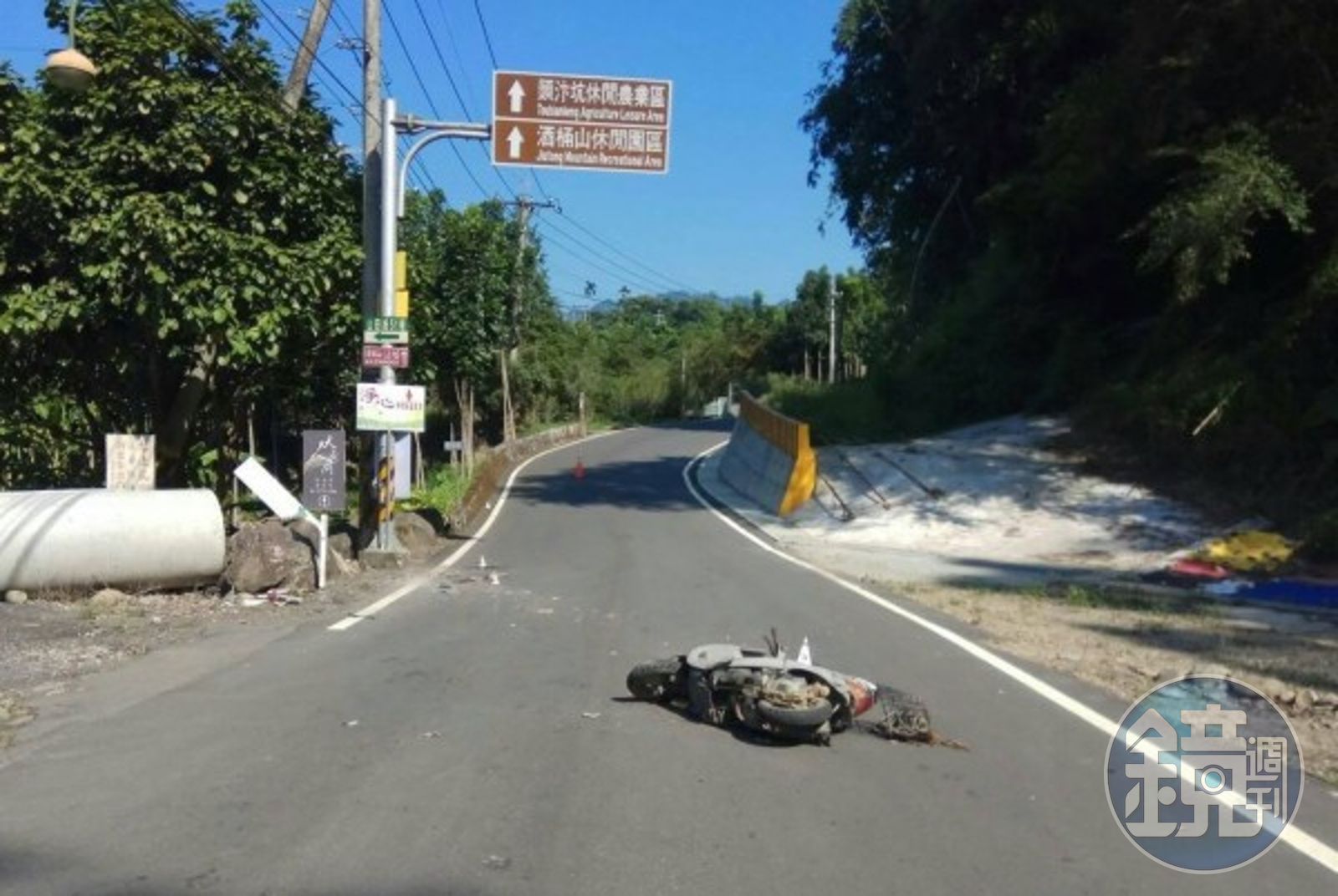 買完沖天炮,宋生已經回到魚池好一陣子,卻沒見2個同學回來,他再騎車沿路尋找,在山田路51巷下坡處卻驚見朱、鄭兩個同學撞上路旁的水泥護欄和基座,現場血跡斑斑,2人倒地不起,他趕緊到附近攔車求救,由民眾幫忙報案叫救護車。