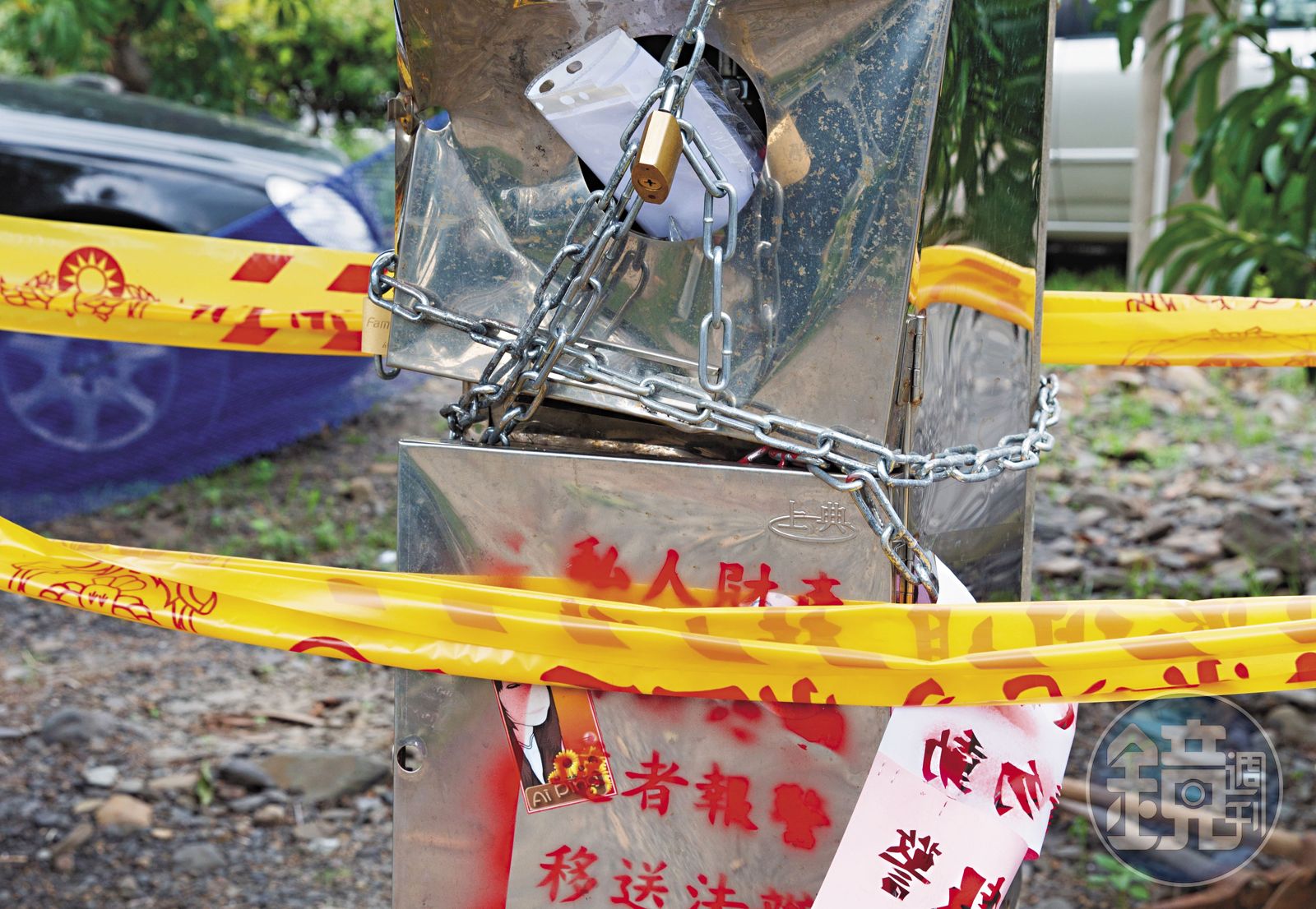 鄭羽庭說:「10月17日下午又有水井工人到咖啡店說要找地主,我警覺到可能水源要出問題了,隨即到遠在1公里外的水源處察看,抽水馬達果然不翼而飛,出水口處還壓了一張紙條,上頭寫著『抽水馬達送修,萬先生』。」