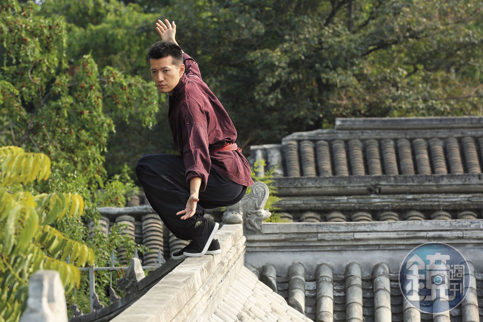 高頭大馬的黃鴻璽,卸下武術服後神情輕鬆許多,看到相機他會搞笑比YA,問起年紀,今年34歲的他俏皮說:「可以說我18歲、未滿19歲嗎?」他坦承說:「本來比較頑皮、叛逆,搞不好會加入黑幫吧!但練武術後,個性相對沉穩了!」