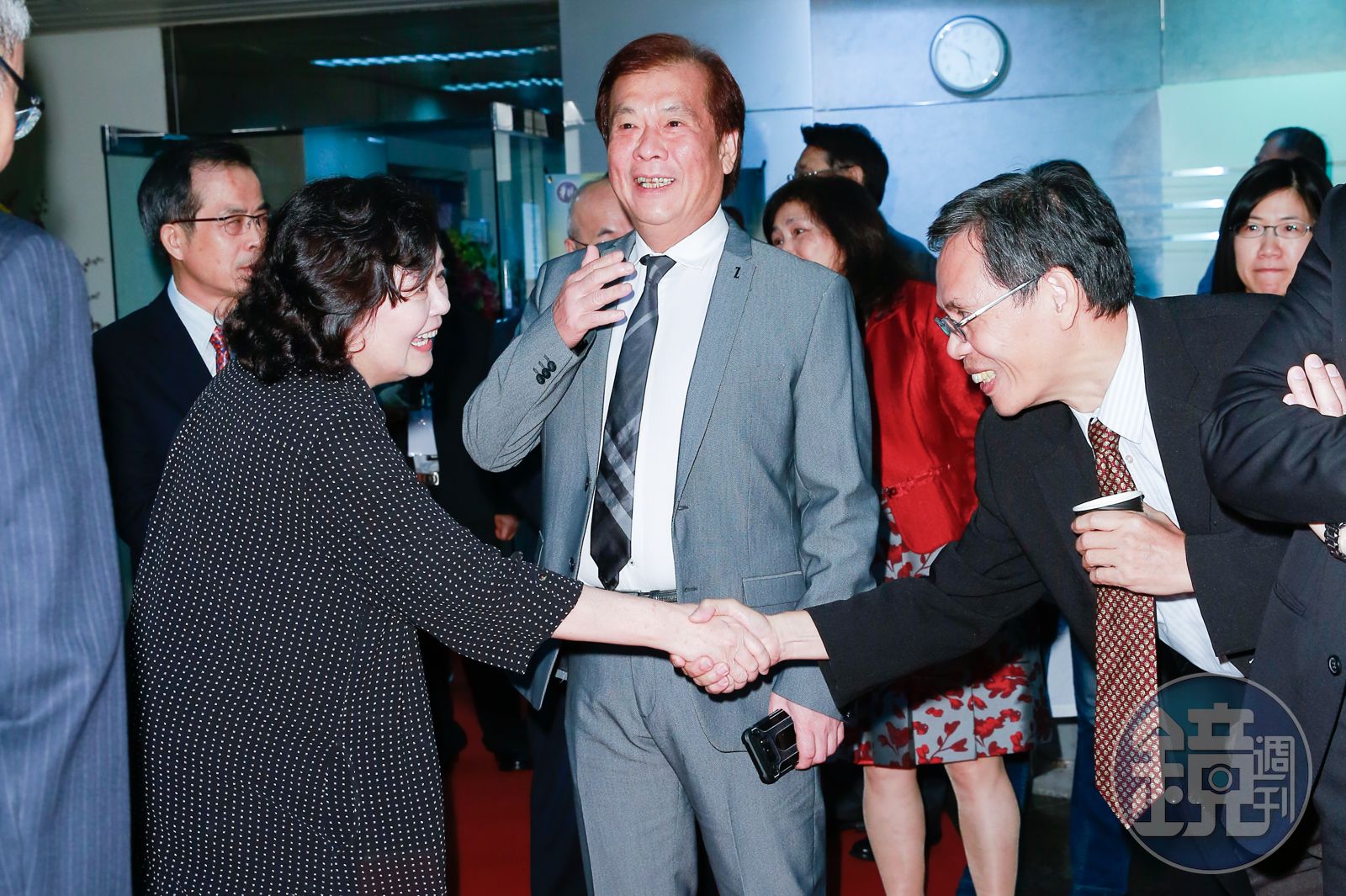 郭建宏(中)出席華視46週年台慶,對於張菲何時復出仍未有定數。發布時間:2017.10.27 18:14 臺北時間