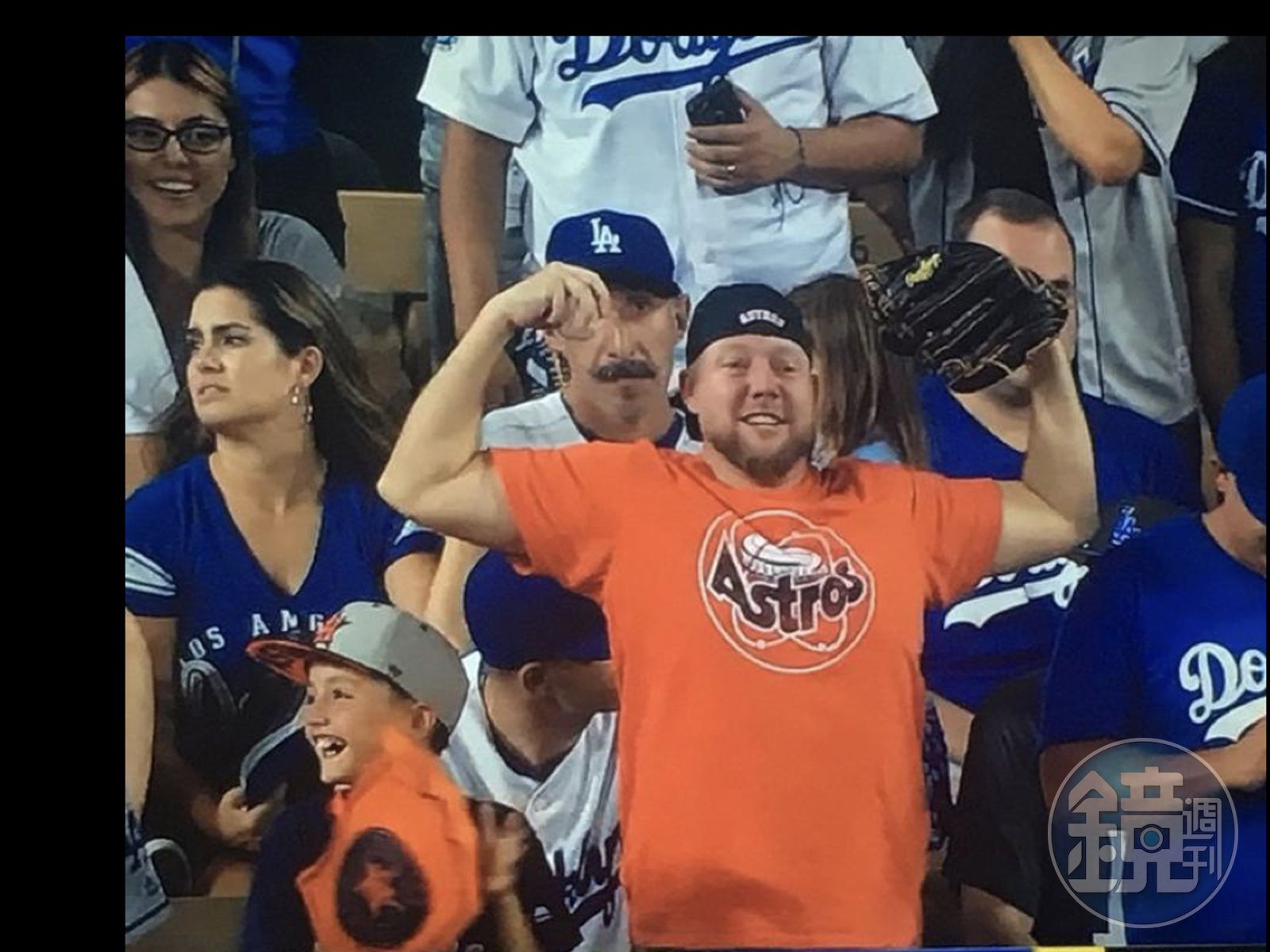 為了見證自己球隊參與的世界大賽,他花了3800美元(約台幣11.5萬)買到了兩張票,帶著11歲的兒子來到道奇球場。