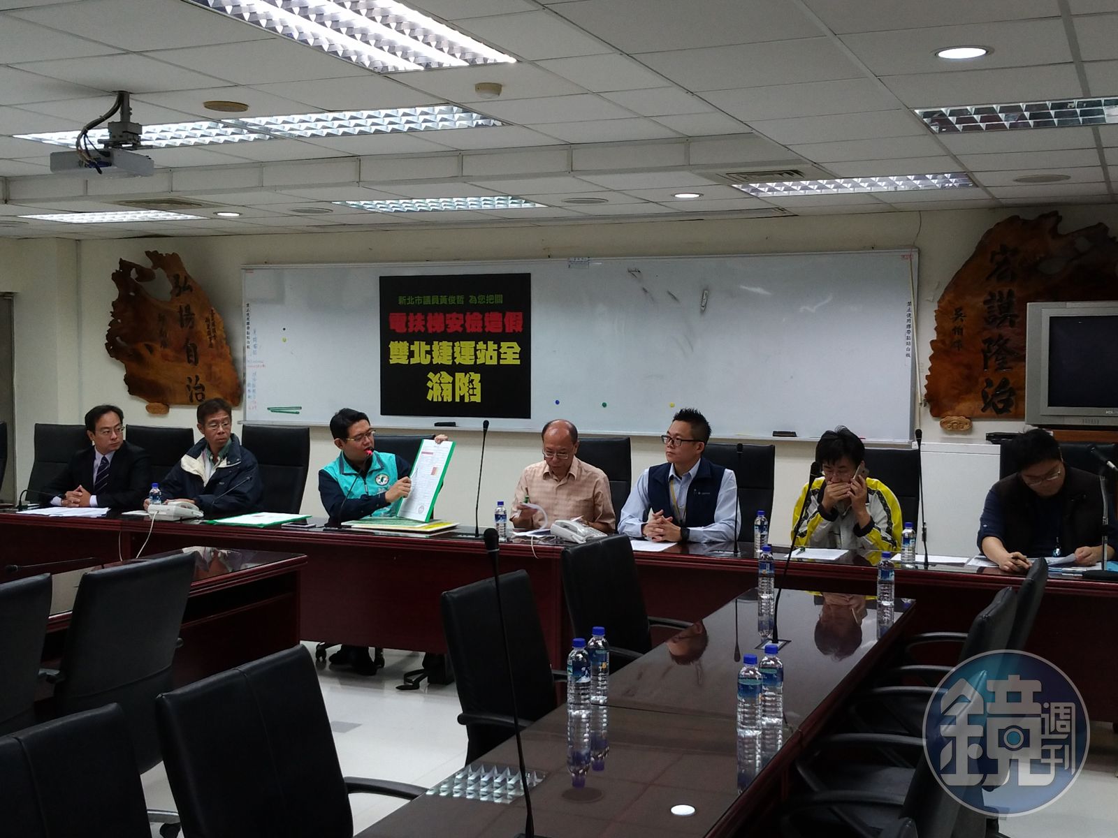 本刊於25日出刊《雙北捷運電梯安檢涉造假》相關專題後,新北市議員黃俊哲也在同日召開記者會。黃俊哲表示,他要求新北市政府工務局,提供中華民國電梯協會提供工務局存查的安檢資料,發現檢查表中的保養維修廠商、安檢數據、和安檢人員親簽欄位等,都出現涉及造假的問題。他嚴正詢問與會的北捷公司、捷運局是否知情,是否縱容此事發生?