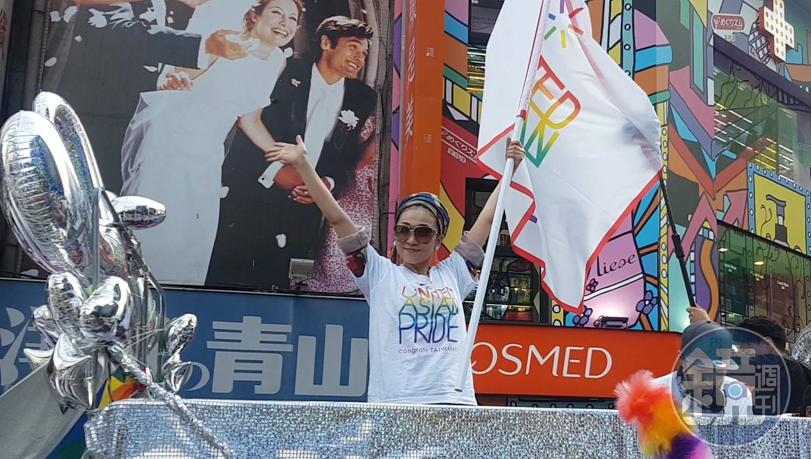 日本歌姬米希亞為同志遊行特地來台參與,並以中文致詞「只要透過不帶偏見的心,就能看到許多顏色,也就是被彩虹所包圍的純白世界。」(讀者提供)發布時間:2017.10.29 15:22 臺北時間