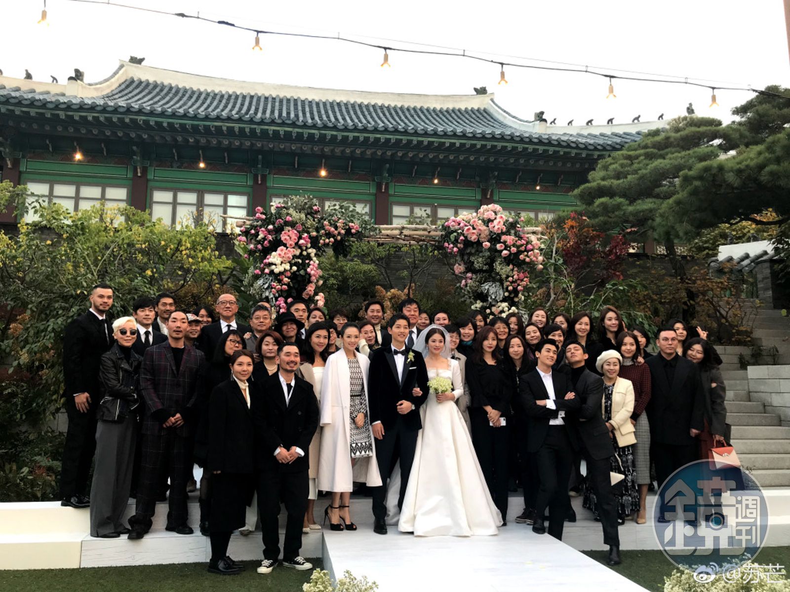 2人在演藝圈人緣極好,宋仲基昔日主持《Running Man》夥伴李光洙、劉在石、池石鎮、金鐘國、《太陽的後裔》金智媛、金玟錫、《軍艦島》黃晟玟、金秀安,還有金喜善、崔智友等人皆盛裝出席,經紀公司前輩車太鉉也現身婚禮,也許因為摯友金柱赫前一日發生意外過世,車太鉉神情明顯憔悴。