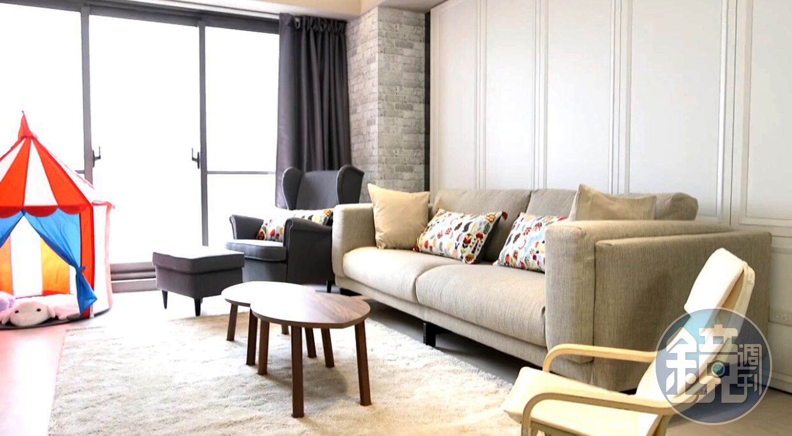 總價含車位約3,000萬元的新家,登記在老婆名下,在圈內有「小氣王」封號的郭彥均對老婆倒是很大方,裝潢風格一律以老婆想法為主,而他則一肩扛起房貸,樂得老婆笑說:「假日都不想出門,只想待在家裡,等老了以後也想繼續住這裡。」