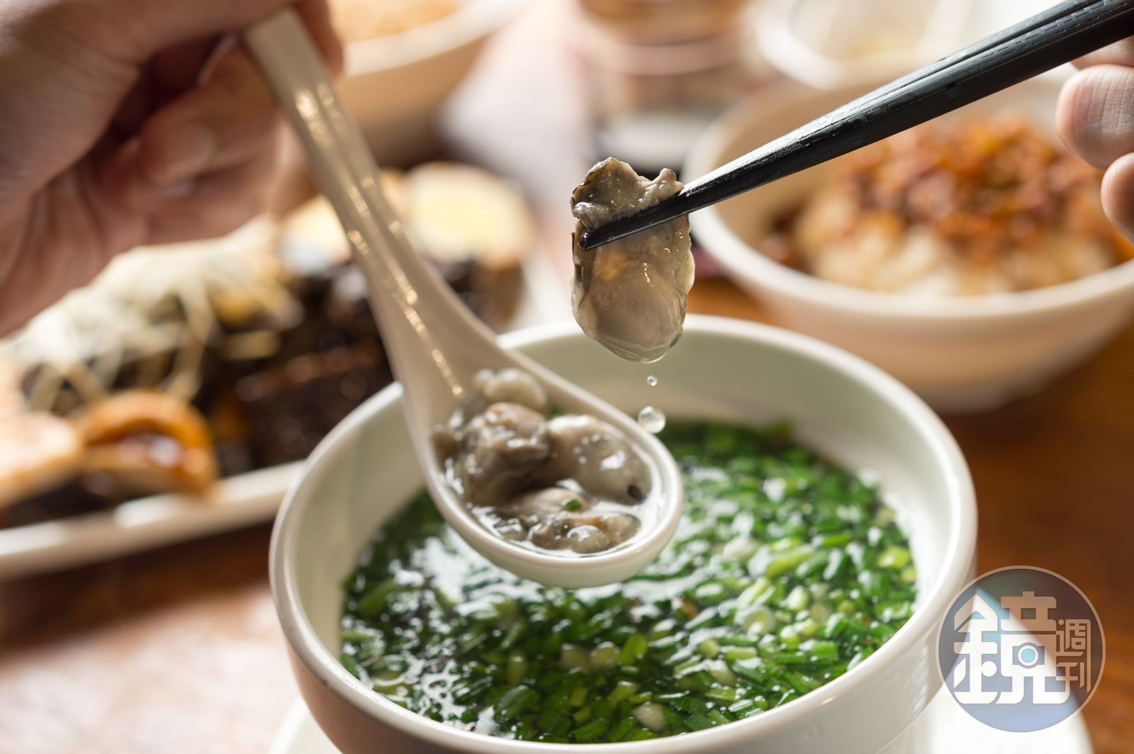 除了藥膳,富含氨基酸跟礦物質的海鮮湯品也很適合秋冬補身,菜單上紅字加註「變猛」的「韭菜鮮蚵湯」用柴魚湯煮宜蘭韭菜加東石蚵仔,肥美鮮香,且光看食材就知是男人聖品。真的有效嗎?李大姐曖昧妙答:「附近很多榮民伯伯會來吃,我只能說,回購率滿高的。」