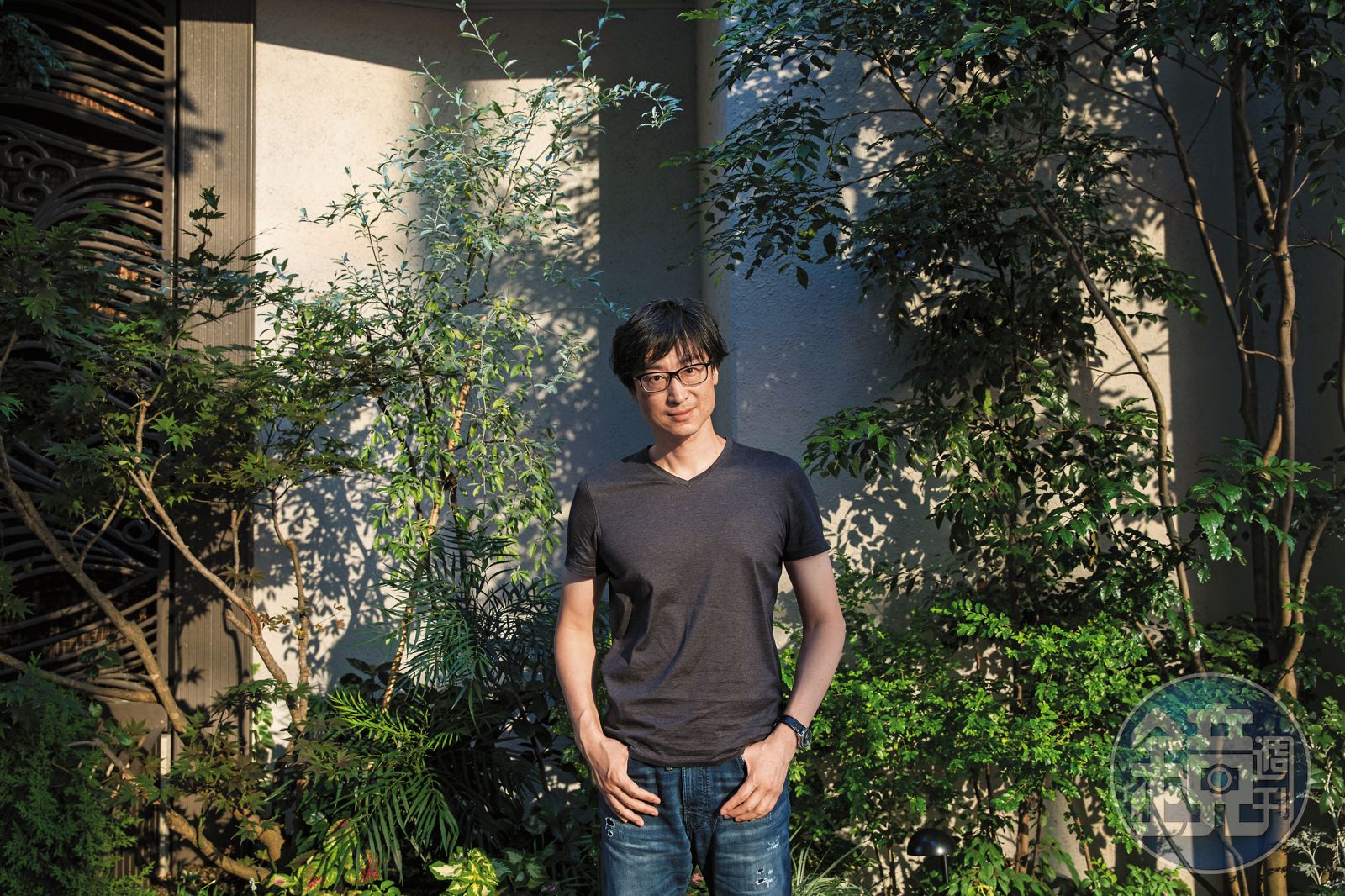 頒獎完在記者會上,他被媒體要求跟純文學最高榮譽「芥川賞」得主又吉直樹合影,人家是一襲黑色排釦西裝,他老兄是輕便的牛仔褲加T恤。我們跟東山彰良約在福岡市區採訪,他側背帆布包,剛從大學教完課趕過來,照舊是隨興的T恤、窄版牛仔褲和球鞋。他的不羈除了表現在穿著,平日生活也保持簡約,數十年來不帶手機,只用電子信箱和室內電話。