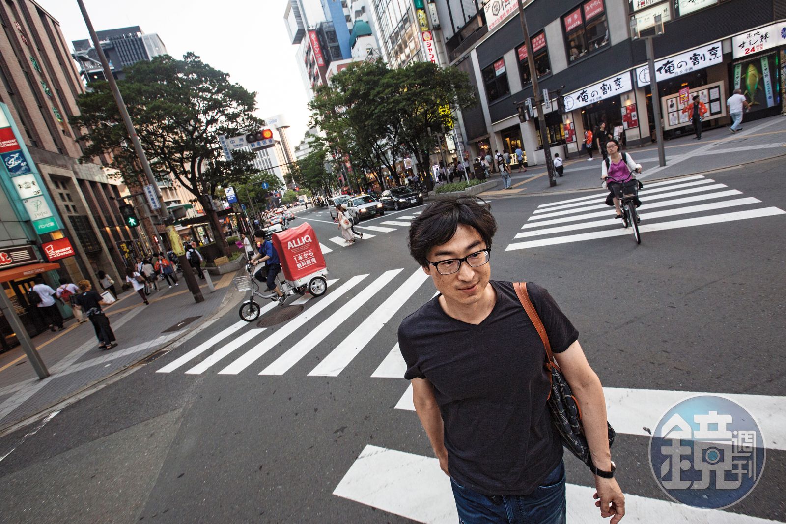 頒獎完在記者會上,他被媒體要求跟純文學最高榮譽「芥川賞」得主又吉直樹合影,人家是一襲黑色排釦西裝,他老兄是輕便的牛仔褲加T恤。我們跟東山彰良約在福岡市區採訪,他側背帆布包,剛從大學教完課趕過來,照舊是隨興的T恤、窄版牛仔褲和球鞋。他的不羈除了表現在穿著,平日生活也保持簡約,數十年來不帶手機,只用電子信箱和室內電話。