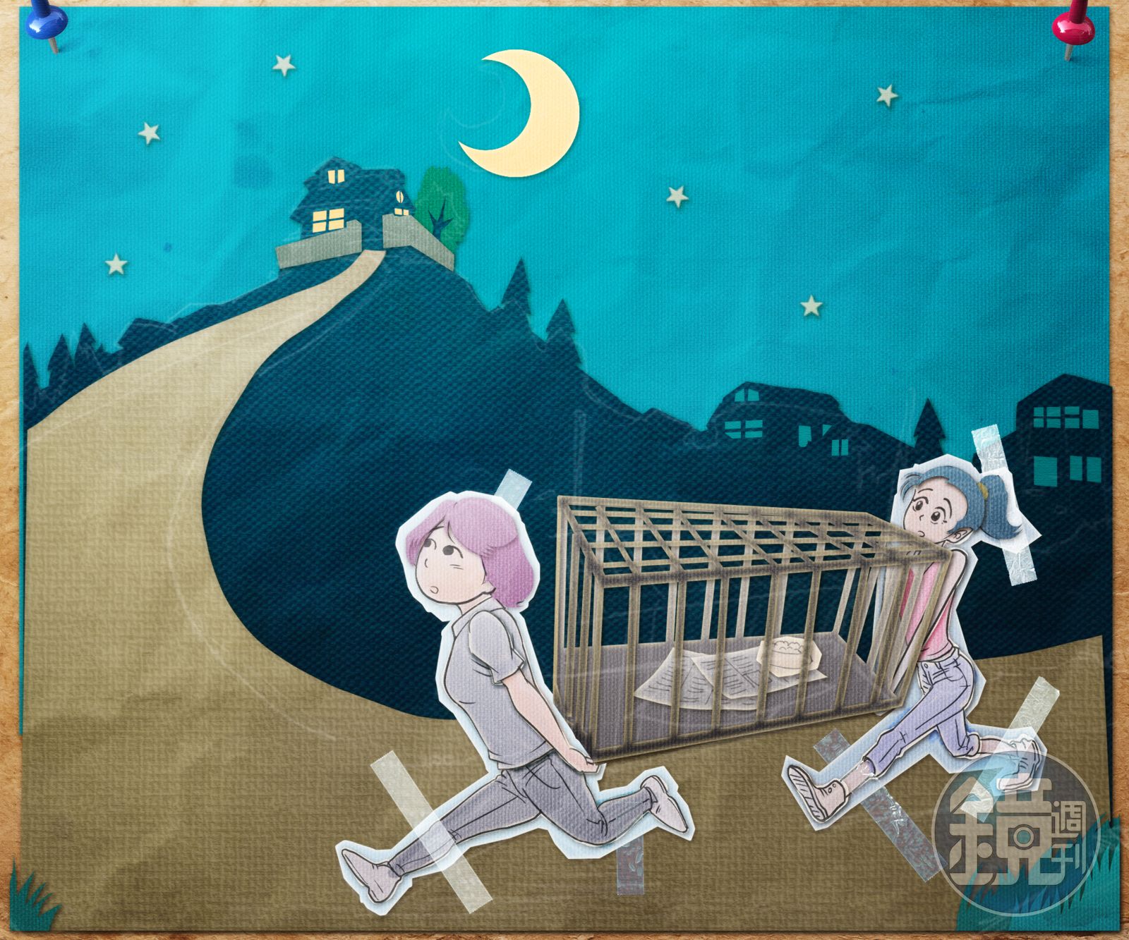 我和翠珊二話不說立即前往國小,黑夜裡一人一頭抬著好大一具不鏽鋼籠子往山坡上我們家去,翠珊纖弱,我氣喘,兩人一行走走停停氣喘吁吁的終於擺放我家院子。