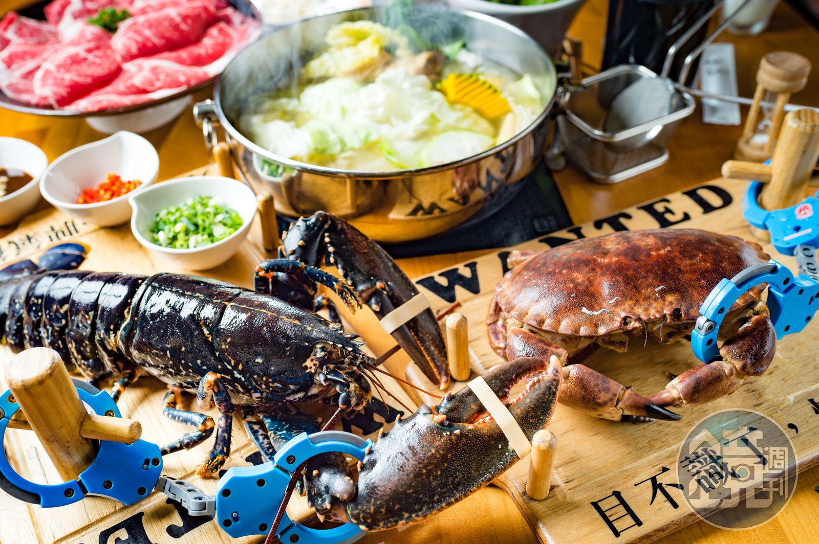 「大釧鍋物」主打各國進口大型活海鮮,上桌時會上手銬避免牠們落跑,意外成了打卡亮點。發布時間:2017.11.30 11:00 臺北時間