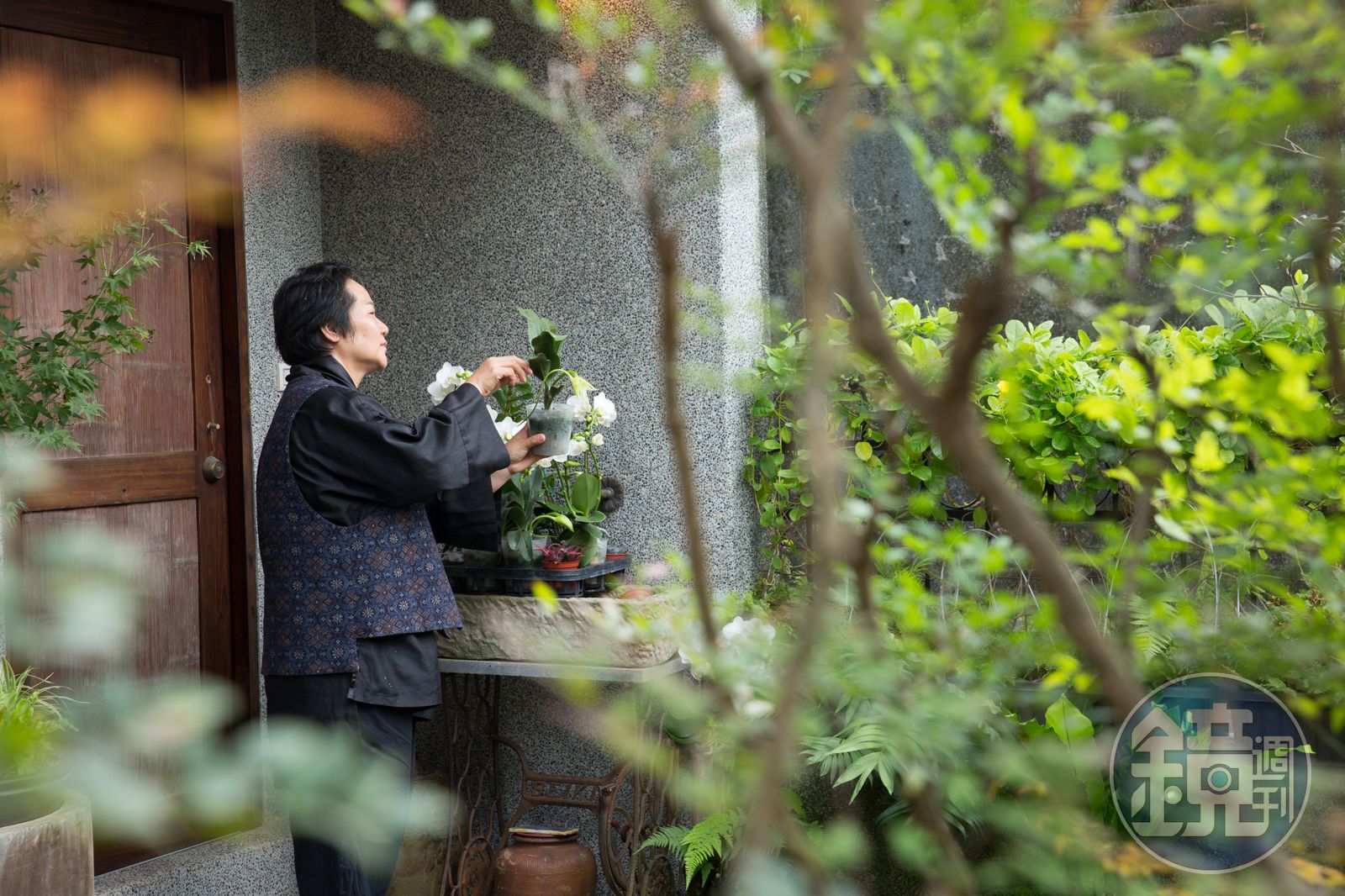 採訪尾聲,我們跟鄭太太到家門前的庭院拍照,為了打造美麗的家園,庭院裡的一草一木都是由她親手布置。一旁的鄭植羽站在窗後,微笑又專注地看著母親,淡淡的陽光灑進屋內,形成一幅唯美的構圖。