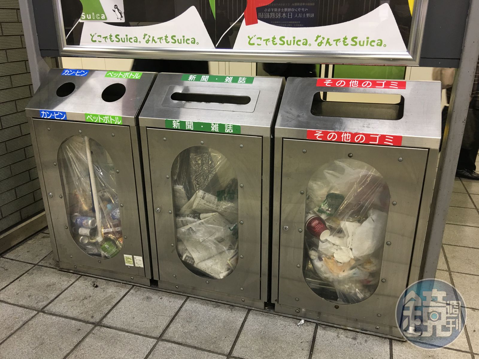 東京街頭本來就沒有設置公共垃圾桶,民眾也很習慣把自己製造的垃圾帶回家處理,頂多把手邊的空瓶罐或紙屑,帶到車站丟。儘管目前東京各大車站的垃圾桶,以「透明箱型」居多,依然有看不見的死角,無法百分百保證恐怖份子不會動手腳,遇到重大活動,還是只能撤掉。