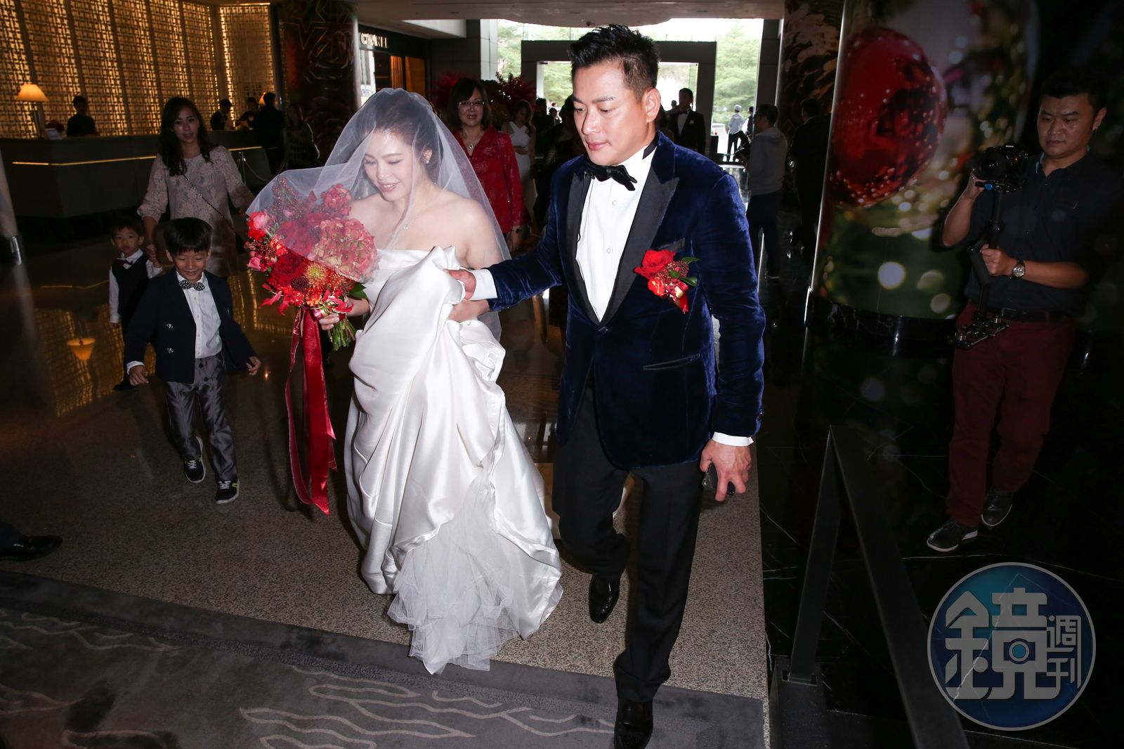 不過新郎、新娘很淡定,僅想著要敬業把工作(指接受媒體訪問一事)做完,他們連頭回都沒回,讓在後的工作人員處理意外善後。