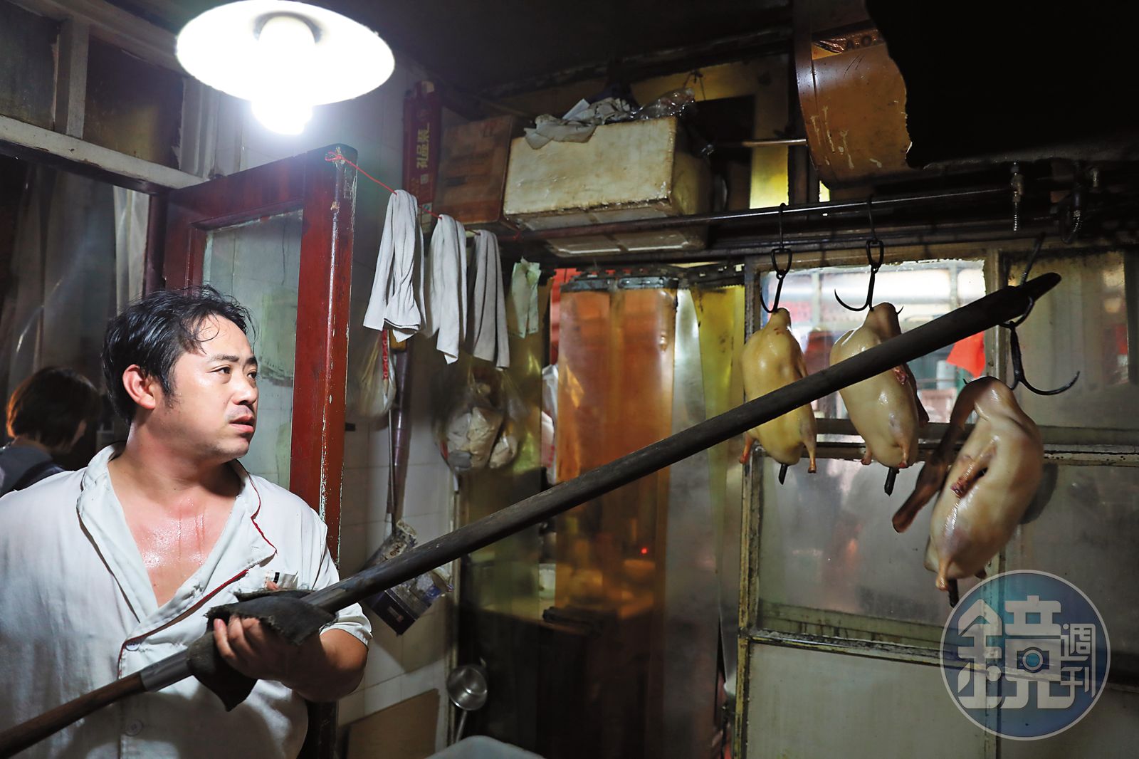 穿過兩側照片牆,看到美國前副總統高爾、周潤發、黃曉明和未發福前的張惠妹,一座紅紅火火的果木烤爐佇立在盡頭,廚師正揮汗將鴨胚吊進吊出,轉個彎就是小小的四合院,中央放幾張桌子,原本的廂房改成大小幾個包廂,廚師就在狹小逼仄的空間裡處理食材,卻一點沒妨礙食客享用烤鴨的熱情。