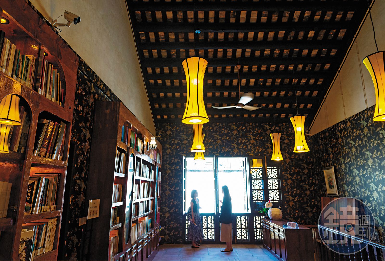 踩著吱吱響的木樓梯,上樓迎面是落地木書櫃,有澳門文史、旅遊相關新書,也有收藏家捐出的絕版出版品,一盞盞鵝黃掛燈從木屋梁垂下,我的腦海閃過這句話「書中自有顏如玉」,耳畔忽然聽見溫柔細語。「你注意到這扇窗了嗎?」一頭長髮的解說員輕聲招呼,「這叫蠔窗,貼的是澳門盛產的蠔殼,不是玻璃。」她引我走到窗前,「當年青樓佳人就站在窗前,讓往來的客人挑選。」原來,這扇窗是一部史書。